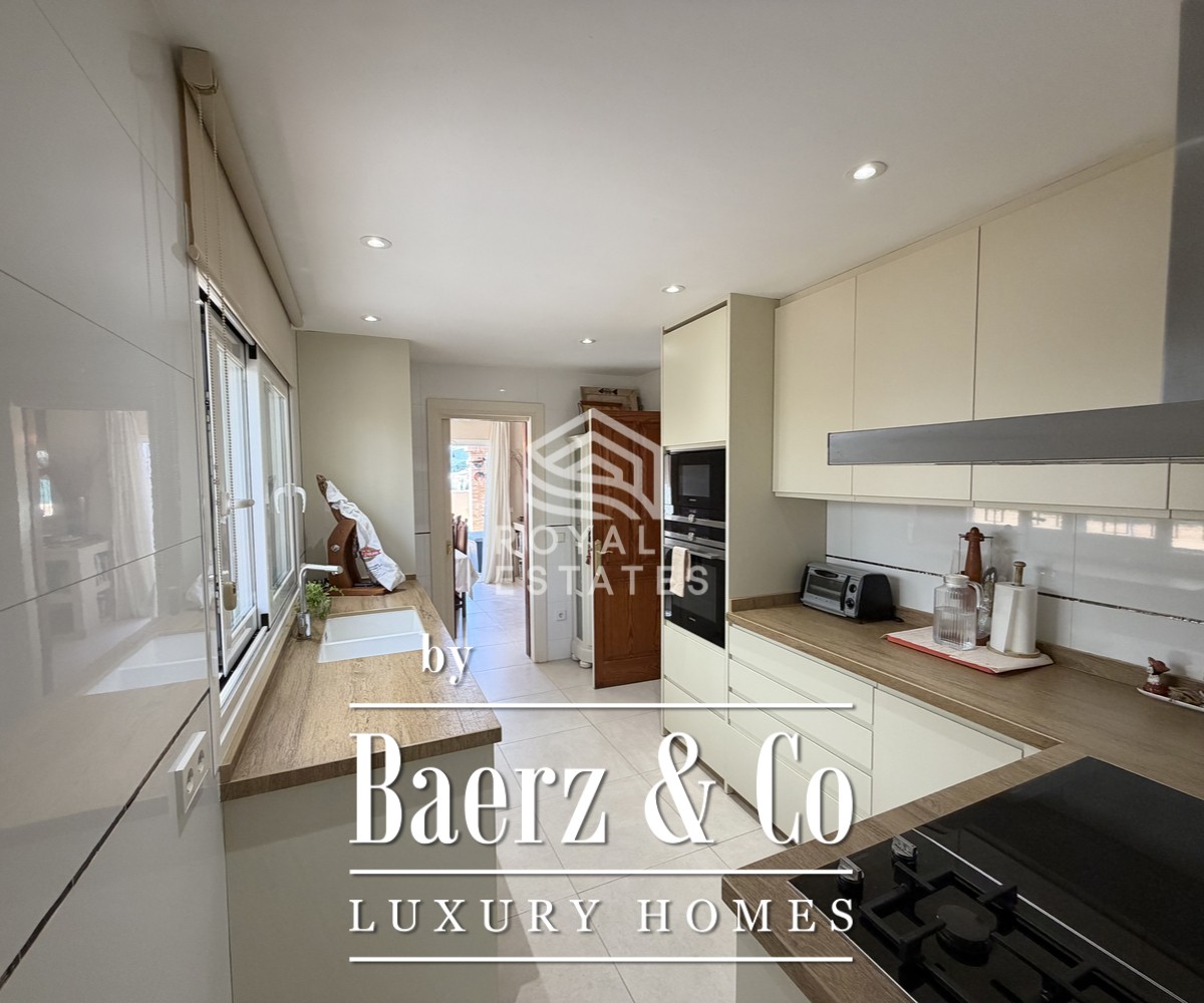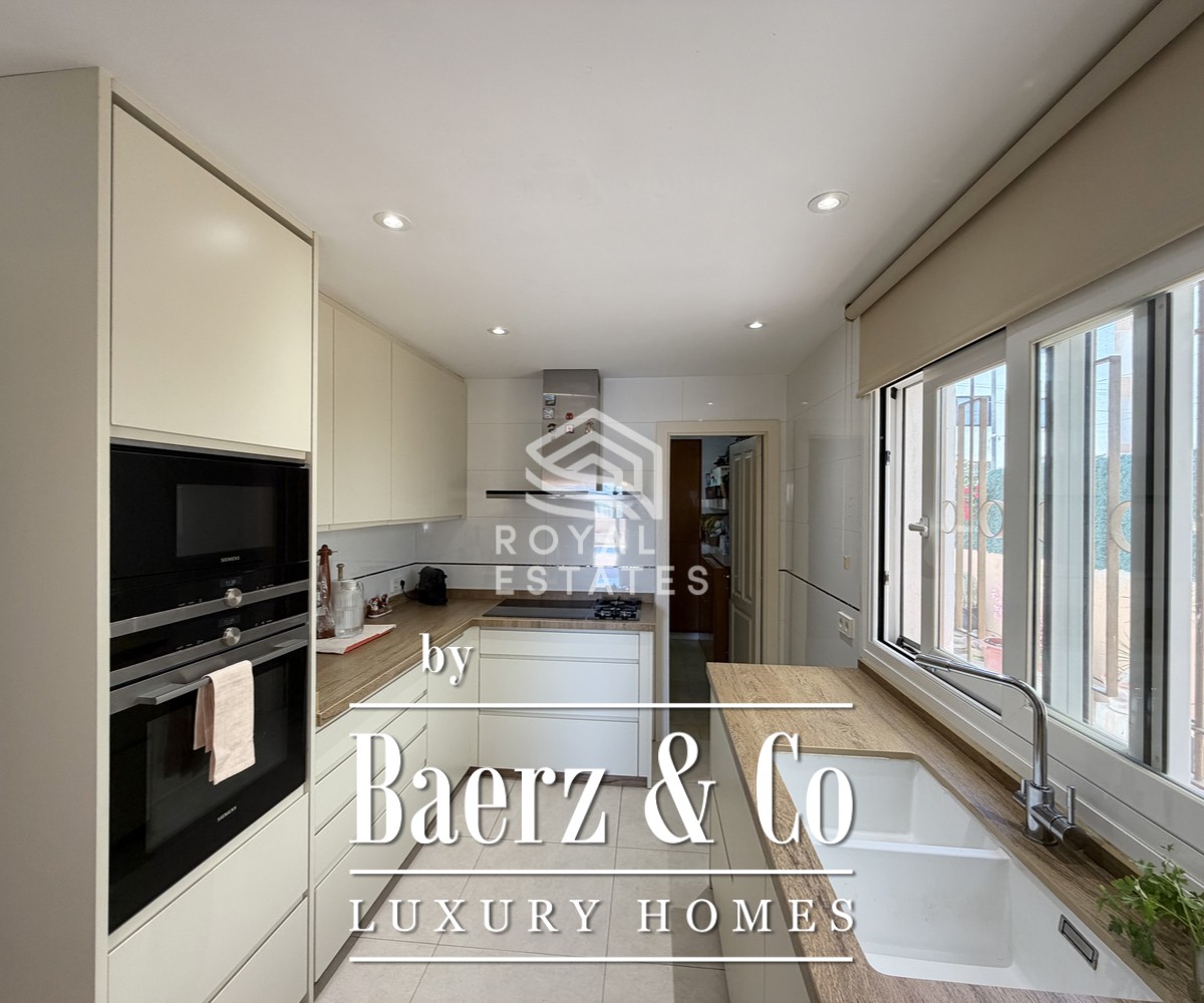 The ground floor welcomes you with a luminous living and dining area, seamlessly connecting to a sun filled terrace. Large windows invite natural light, enhancing the indoor outdoor flow, while a covered porch offers shade in the warmer months. A private swimming pool, surrounded by a well tended garden, forms a serene backdrop ideal for relaxation. The newly renovated kitchen, with a practical pantry, is complemented by a dedicated office space designed for remote work or quiet study.