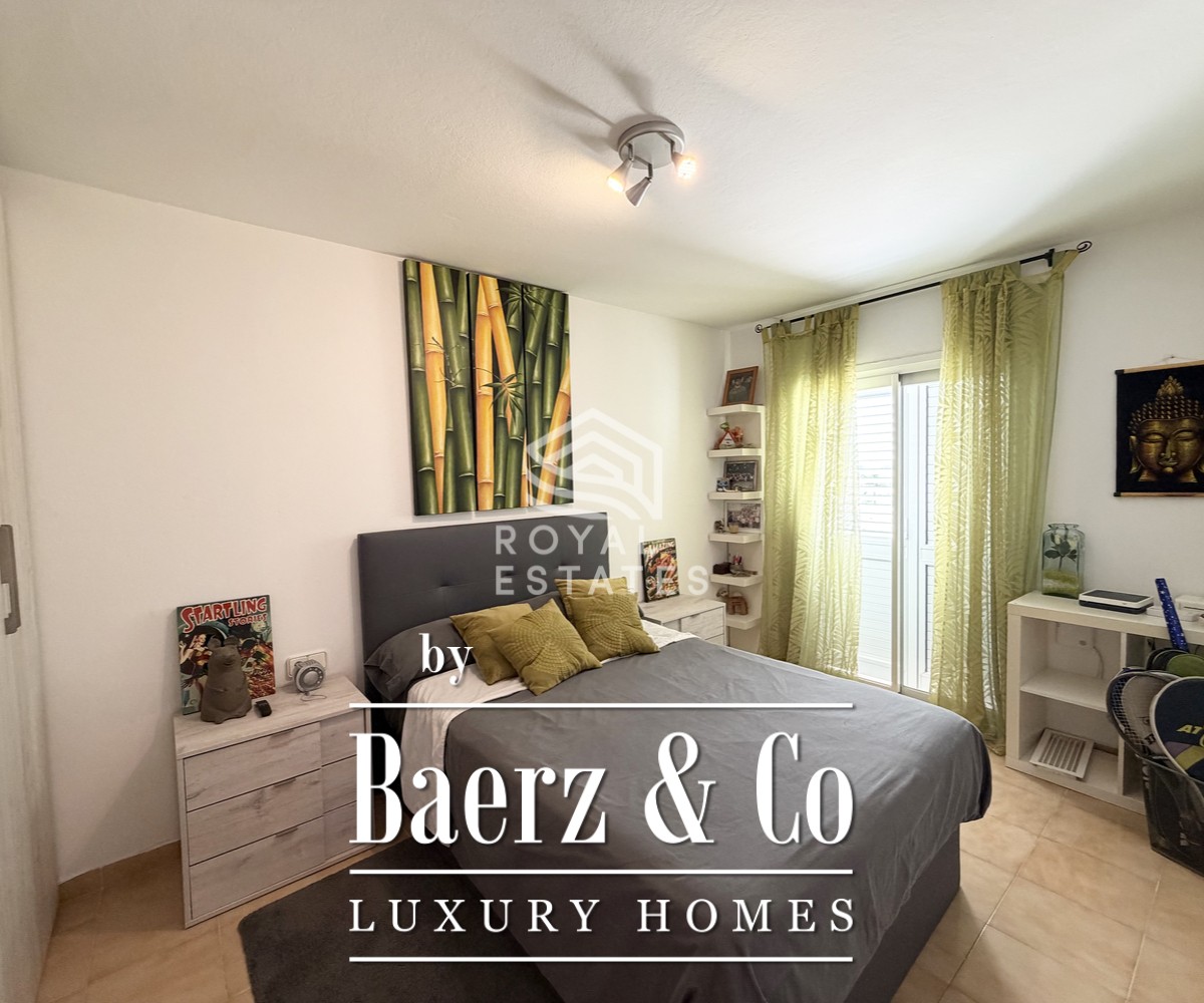 On the first floor, three double bedrooms enjoy ample proportions and natural light, with two offering direct access to a private terrace. The master bedroom, secluded on the top level, includes a hydromassage bathtub and views towards Dalt Vila, alongside a laundry area and additional flexible room. Outdoor areas, adorned with greenery, flowers and a lemon tree, invite year round enjoyment. With its combination of comfort, functionality and premiere location, this home offers an authentic approach to Ibiza island living.