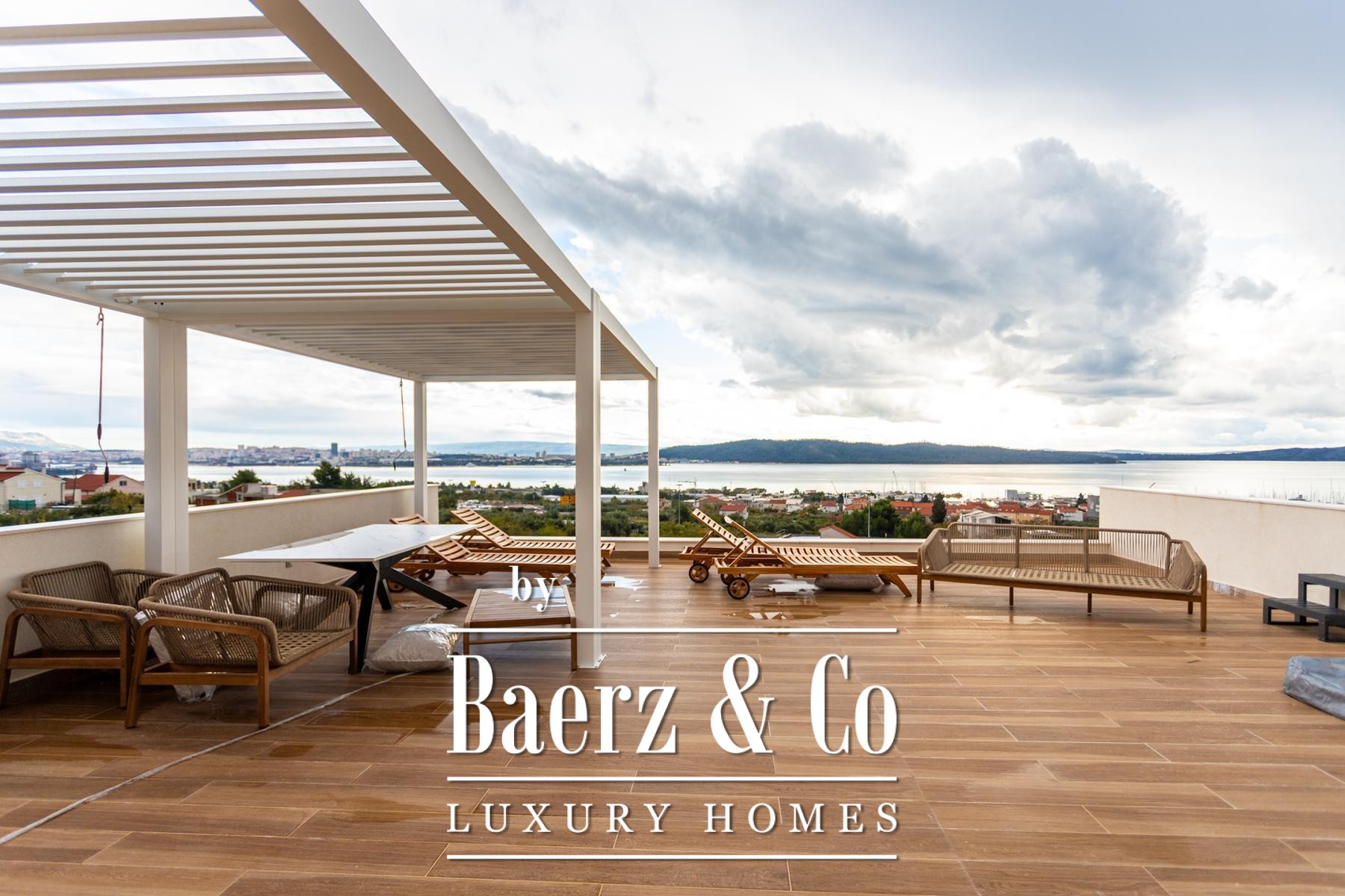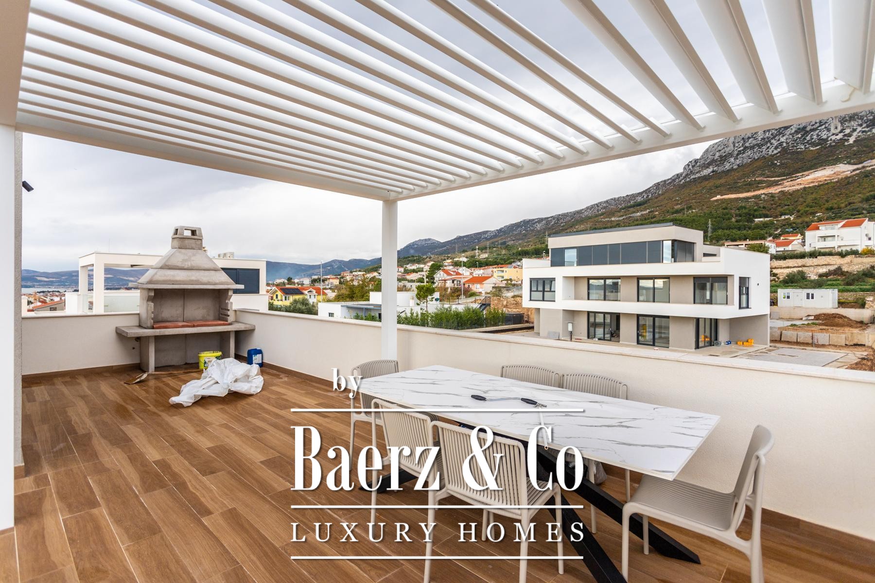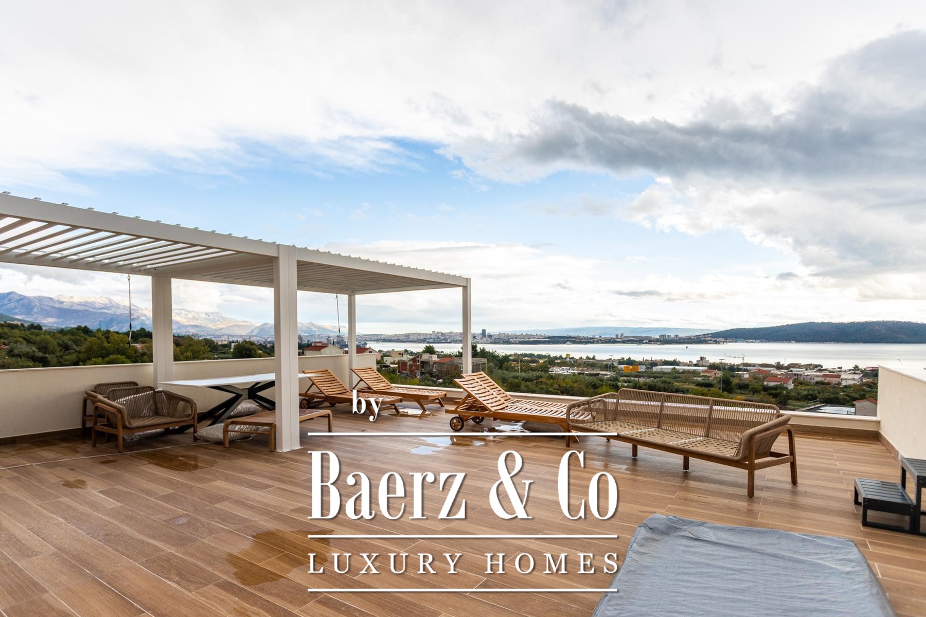 Villa Kaštela invites a sense of quiet clarity, its 300 m² interior designed for both privacy and openness. This villa Kaštela with a heated pool and sea view rests within a private enclave of contemporary villas along the Split to airport route, set on a 550 m² plot that frames the Adriatic horizon.