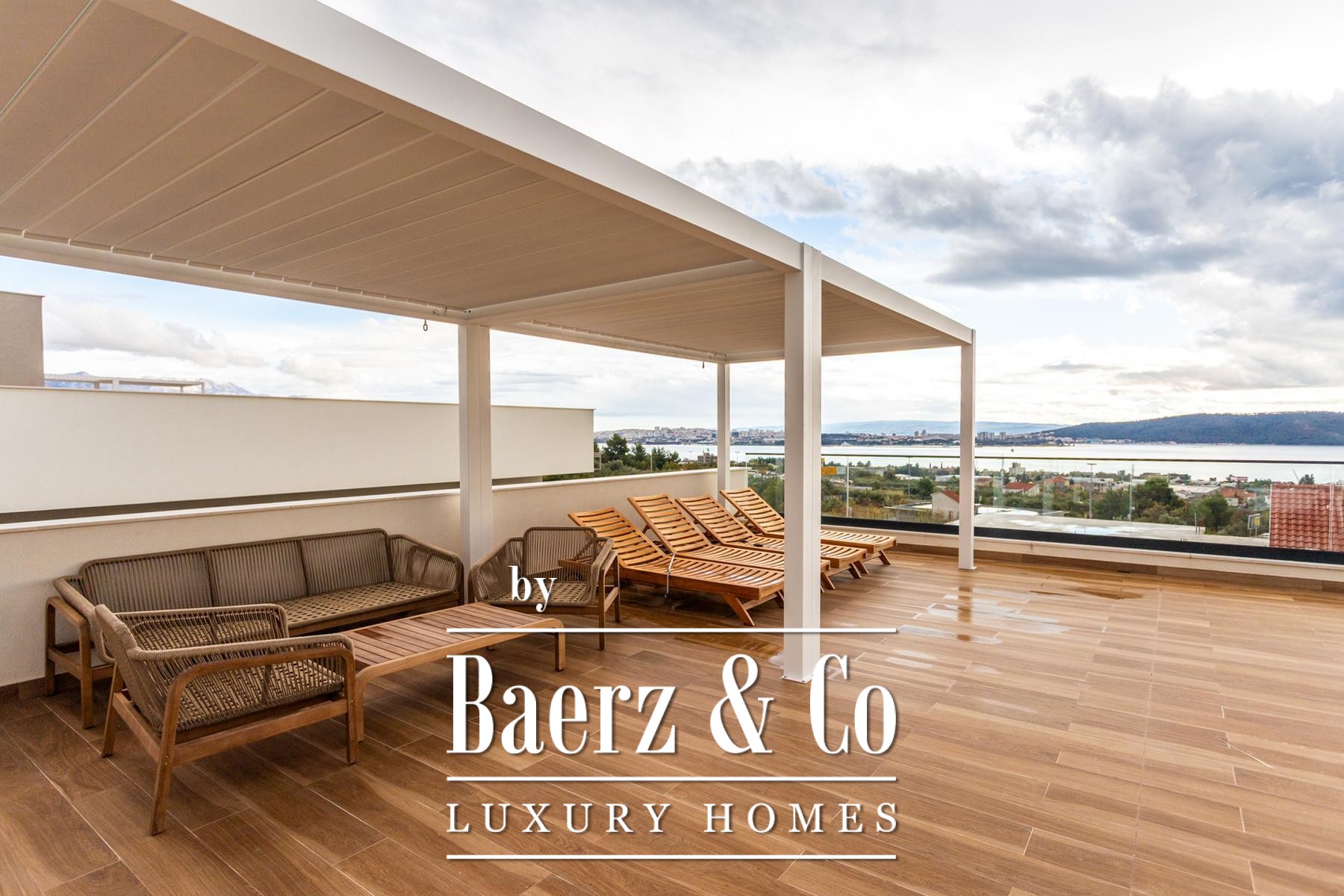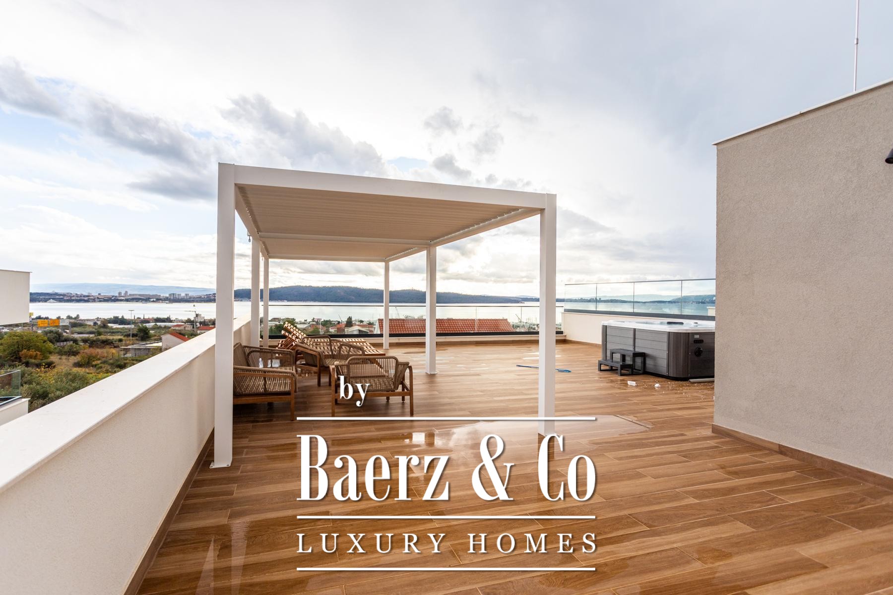 A full second floor opens to a roof terrace orchestrated for leisure, featuring a jacuzzi, barbecue, and a sheltered lounge nook. All rooms are individually climate-controlled and benefit from underfloor heating, ensuring year-round comfort. The property is sold through a company, relaying a 3% tax exemption for the buyer. This villa speaks to those who appreciate understated luxury, exclusivity, and a sense of place along Croatia’s sought-after coastline.