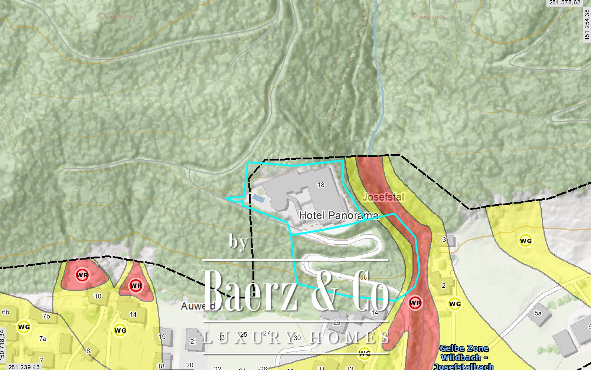 Hotel complex Kaiserwinkl Kössen is an exceptional investment opportunity situated in one of Tyrol’s most established and sought-after holiday regions. Set at the foot of the Wilder Kaiser mountain range, near Lake Walchsee, this property features panoramic alpine views and a remarkable setting in Kössen, Austria. With a plot size of 11,977 m² and approximately 6,921 m² of usable area across seven stories, it presents a unique foundation for visionary redevelopment.