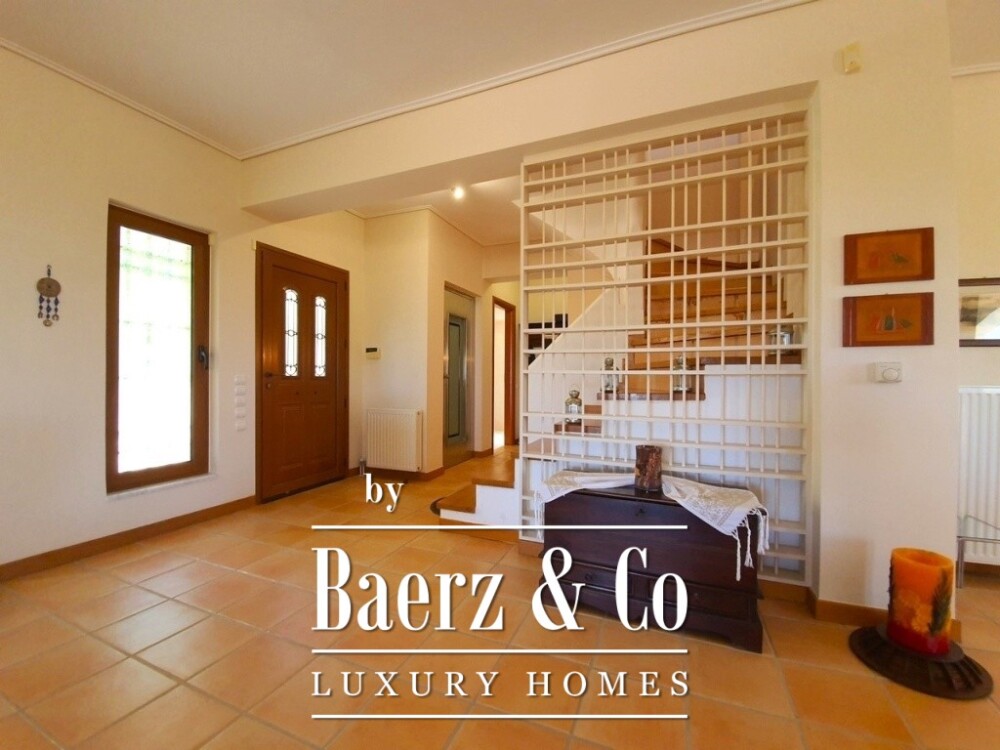 Villa Kosta invites an immediate sense of serenity, positioned in a coveted pine-covered enclave less than 500 meters from pristine Greek beaches. This villa Kosta pairs uninterrupted sea views with a 335 square meter interior, anchored within a privately fenced 1,020 square meter landscaped plot. Light traces every line of the three levels, which are linked by both an internal oak staircase and a discreet three-person elevator.