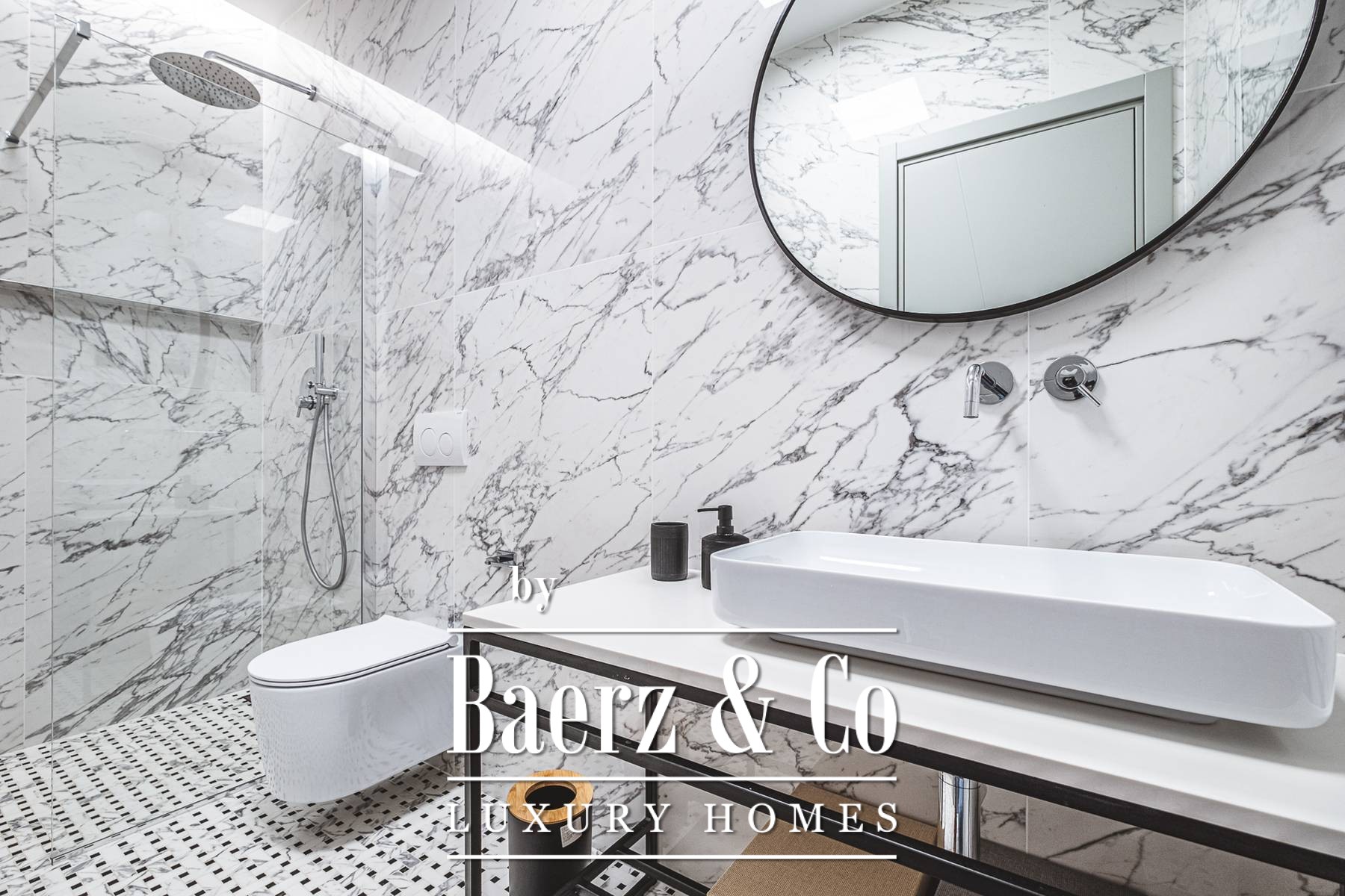 The upper level features four bedrooms and four bathrooms with each room appointed for comfort and clarity, while the master suite boasts a private terrace, a dressing room and abundant natural light. Parking is effortless with two garages and two dedicated spaces, a subtle nod to the ease and security woven through the property. Every detail reflects a quiet commitment to quality and Mediterranean well-being.