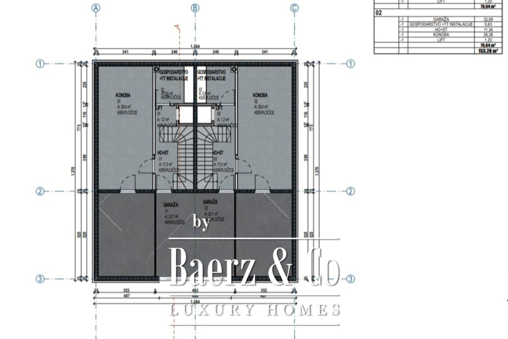Upstairs, three bedrooms each offer an en-suite bathroom, while the master suite extends to a balcony above the sea. The inclusion of a Daikin heat pump, ceiling air conditioning, and ALU carpentry underscores the property’s commitment to quality and comfort. This semi-detached house in Kostrena will reach completion at the end of 2024, offering an elegant, private base to experience the Adriatic coast.