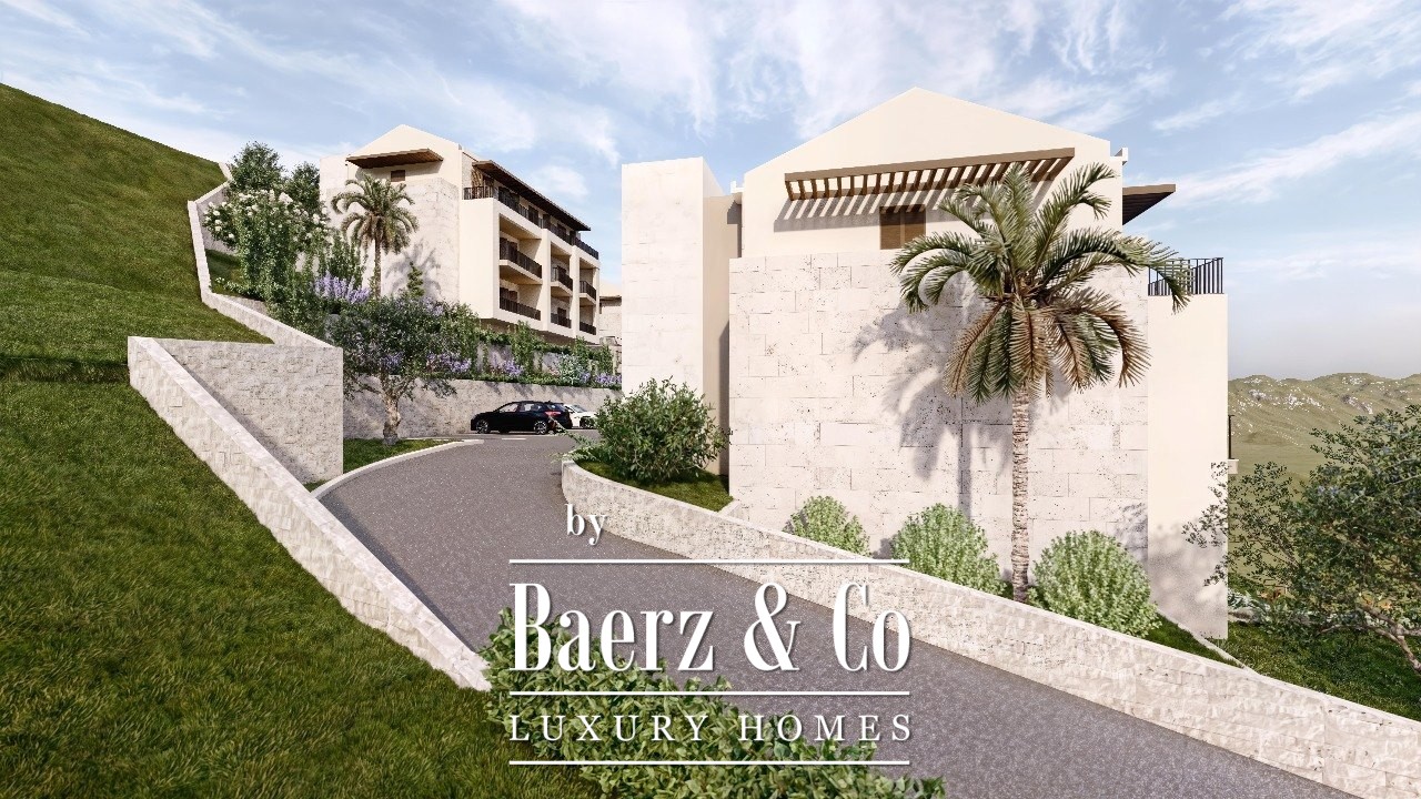 The building has 3 floors, while the apartment is on the 2nd floor. This apartment complex has 2 salt water pools. There is a berth for a boat taht is 70m2 away from the building. Each apartment has its own parking spot, and also, there is a n option of buying a garage spot for 20 000e. There are 5 buildings that have 3 floors in this apartment complex and each one has 5 apartments. This building will be finished in December 2026.