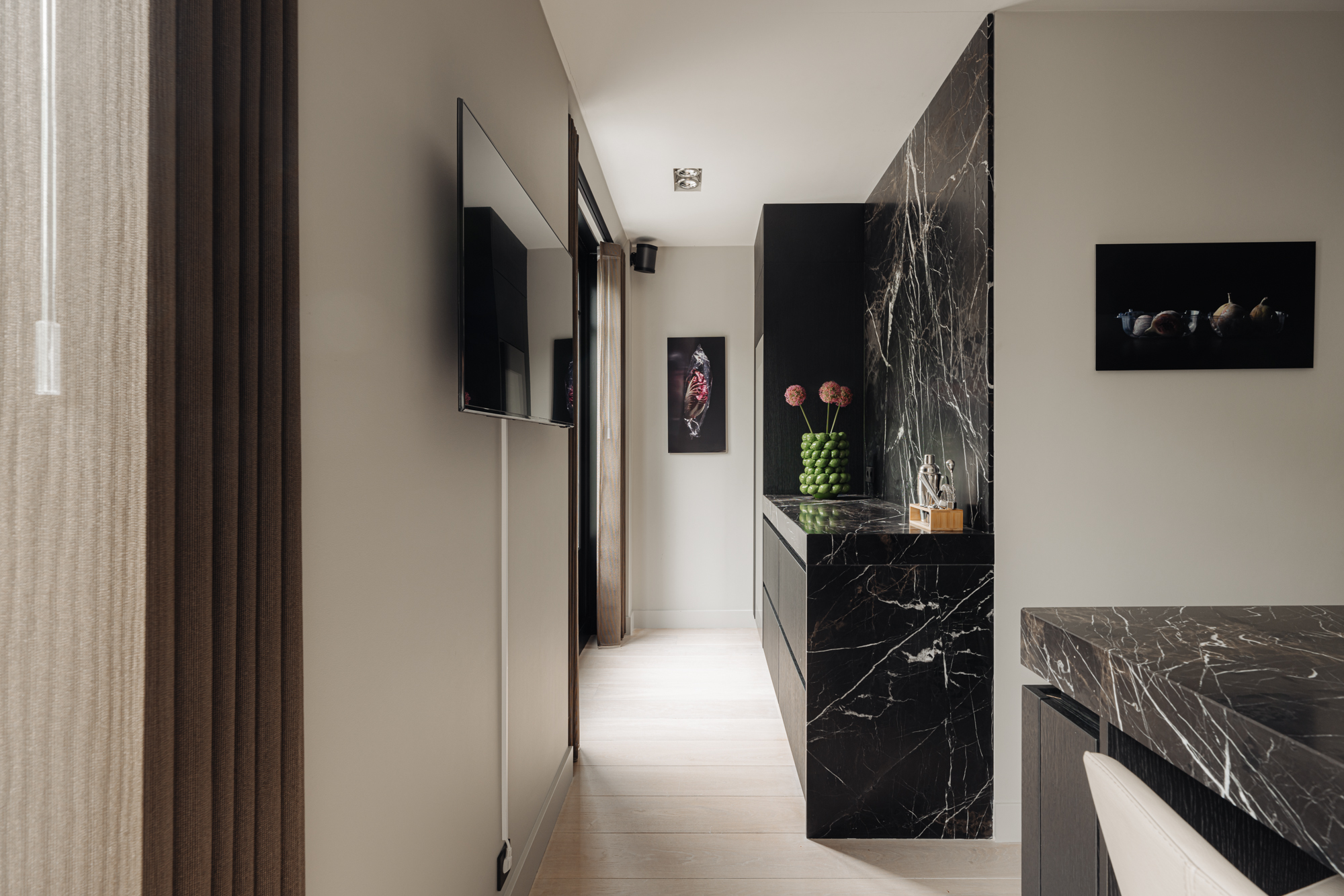 Behind the double front doors lies an apartment of international allure. Here, excellent material choices, outstanding craftsmanship, and attention to detail come together to create a unique living experience best described as "suite" life. Here, the warmth of a home meets the luxury of a five-star hotel.