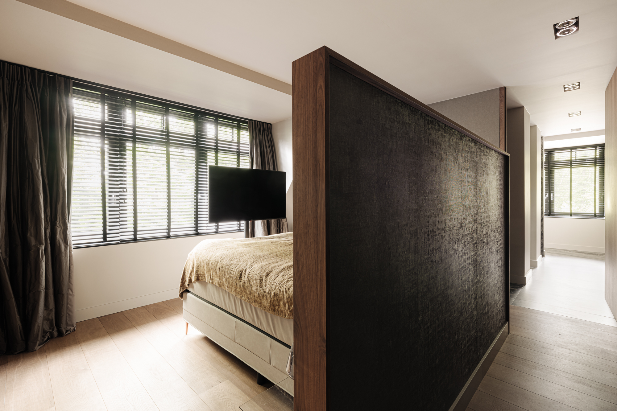 The entire apartment is equipped with 'air spots.' These are built-in lighting fixtures with a ventilation function connected to the apartment's ventilation system. An ideal solution for comfortable and stylish living and one of the many examples that show that every detail has been considered. Additionally, the apartment is equipped with a home automation system, and access to the estate and apartment can be controlled via a phone or tablet.