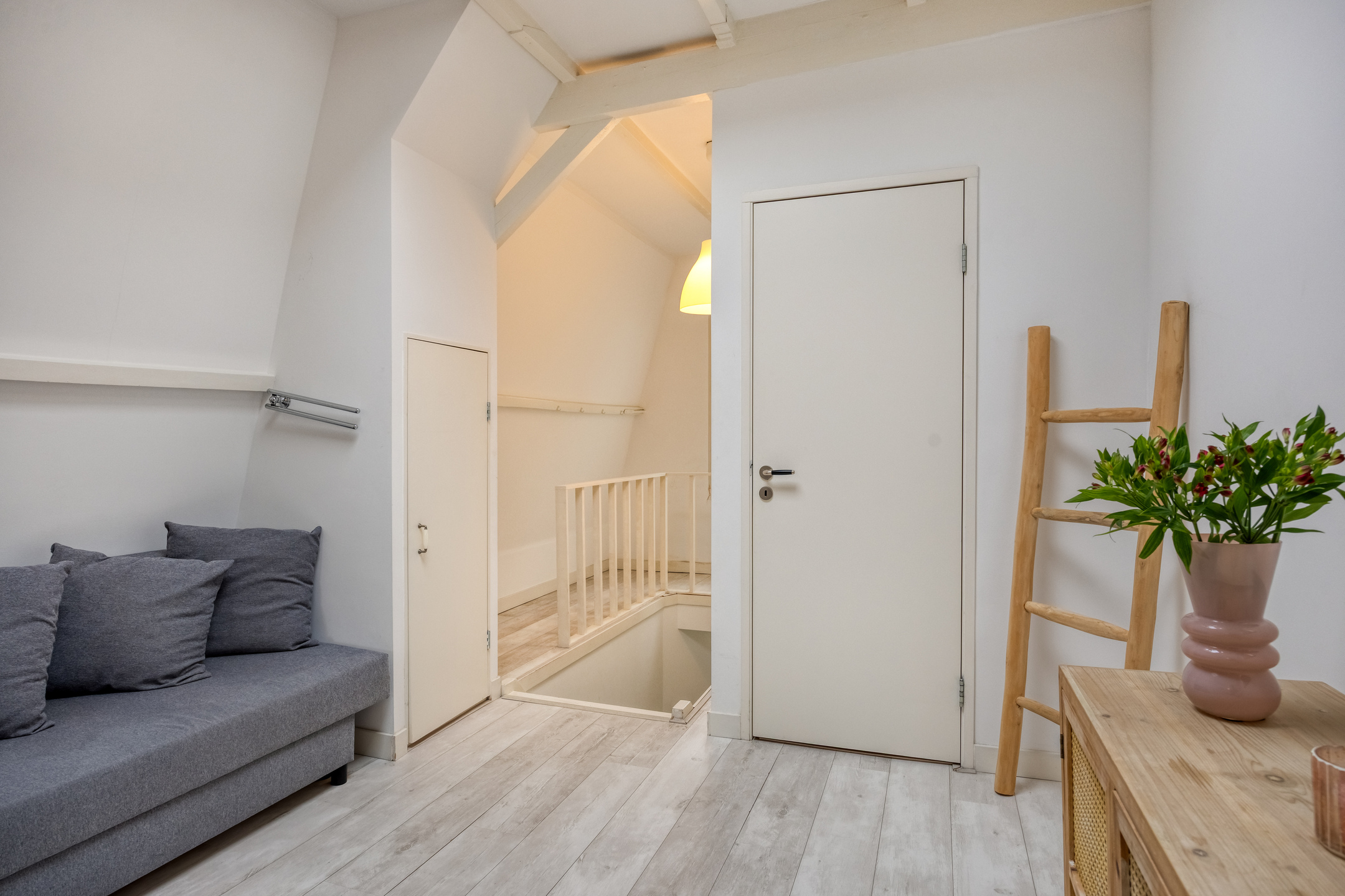 Tucked away in an alley between Breestraat and Botermarkt lies the entrance to this unique home. From the street, it is difficult to guess what you will find behind the front door, but once inside, you will be surprised by the light, the space, and the pleasant layout.