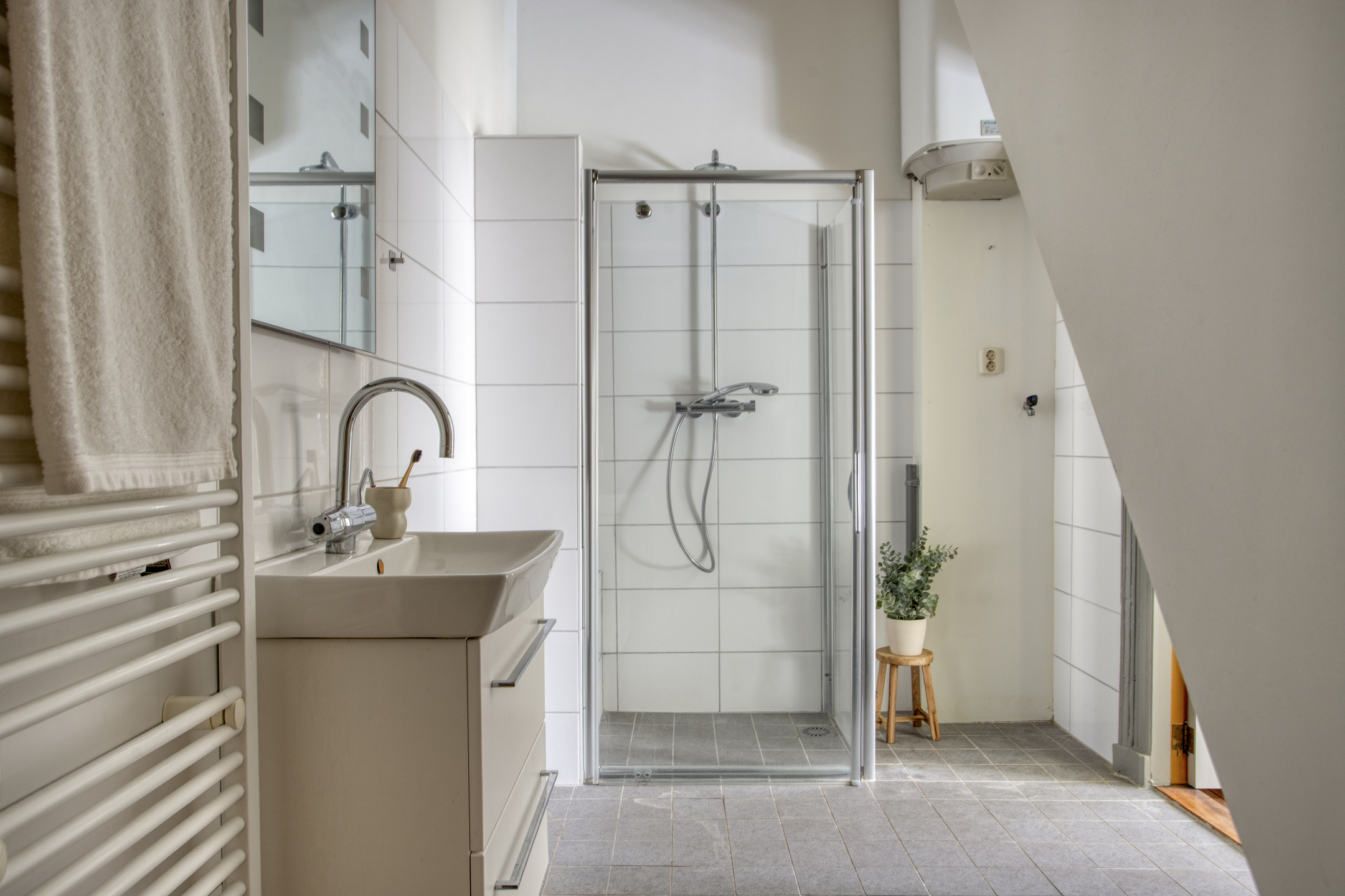 Outside, the deep rear garden faces south west, ensuring ample sunlight yet offering shaded views from mature trees. Beyond lies a private, 1,318 m² enclosed lot, shared among neighbors, with space for children’s play, gathering, and water access. Essential amenities, schools, transit, green parks, and urban offerings lie nearby. This townhouse, a registered municipal monument, carries period character, partial double glazing, central heating, and inclusion in a residents’ association.