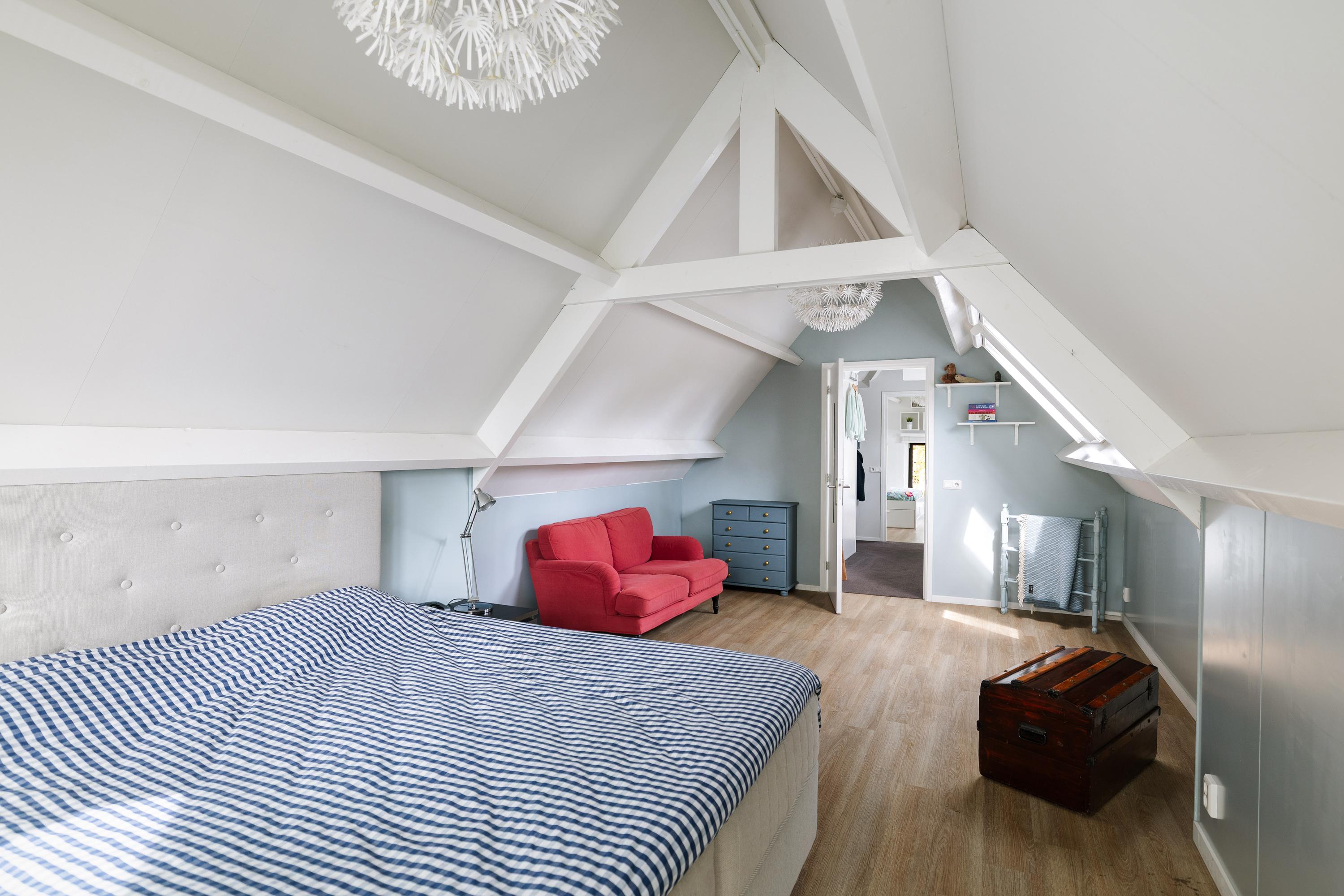 Space is in abundance, as the property sits on a generous plot of approximately 1,755 m². At the front is a charming garden with a characteristic semi-circular driveway. Beside the house stands a spacious, detached brick garage with cavity walls and an upper floor—ideal for parking a classic car, storing bicycles and accommodating a workbench. The upper level offers excellent potential for creating an artist’s studio or hobby space.