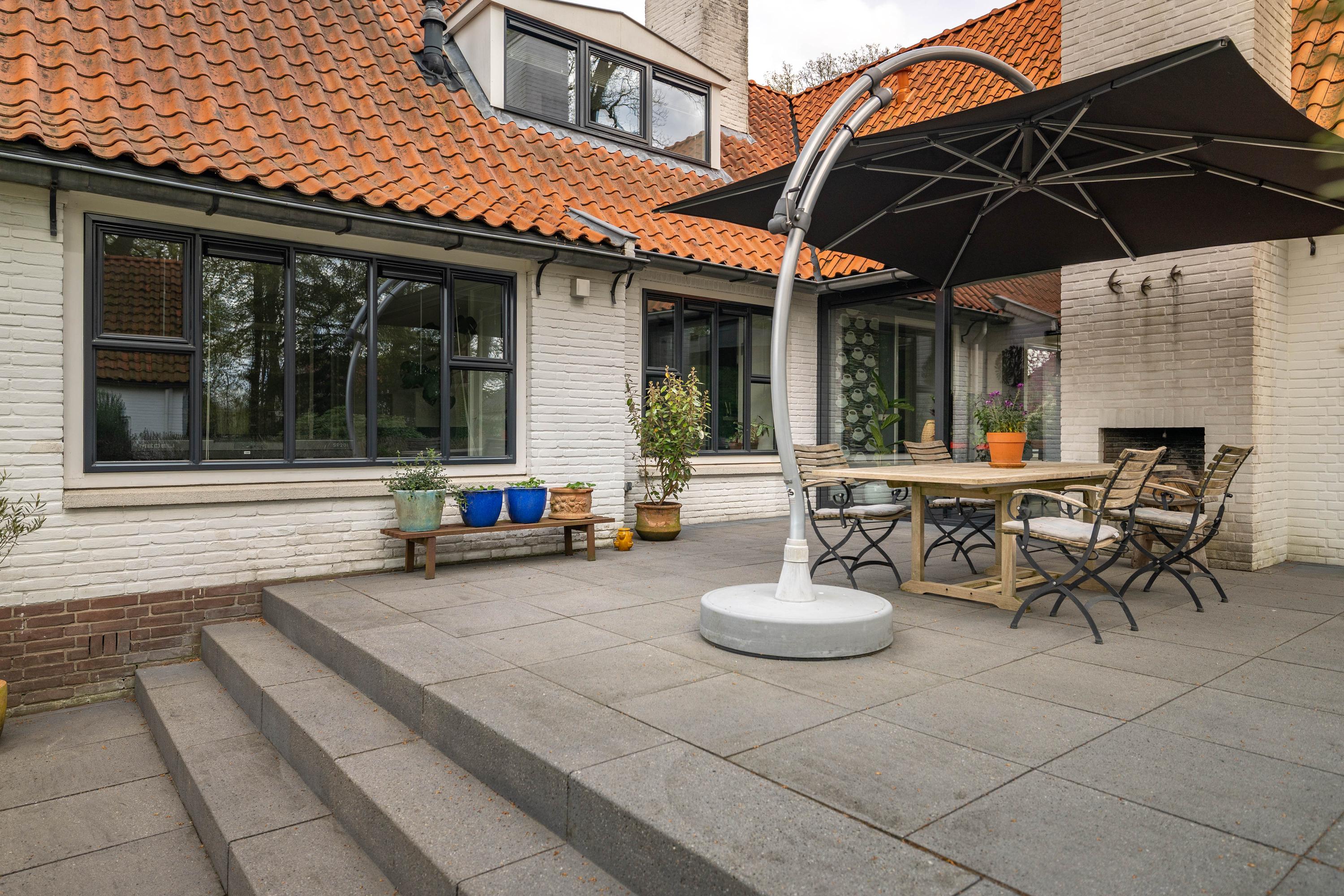 The garden is a true haven. Thanks to its sheltered position and mature privet hedges, privacy is abundant. The garden design exudes tranquillity, with lawns, shrubs and two terraces (one directly adjoining the house, finished with Schellevis tiles) alternating harmoniously. Several seating areas invite you to enjoy the sun and greenery throughout the day.