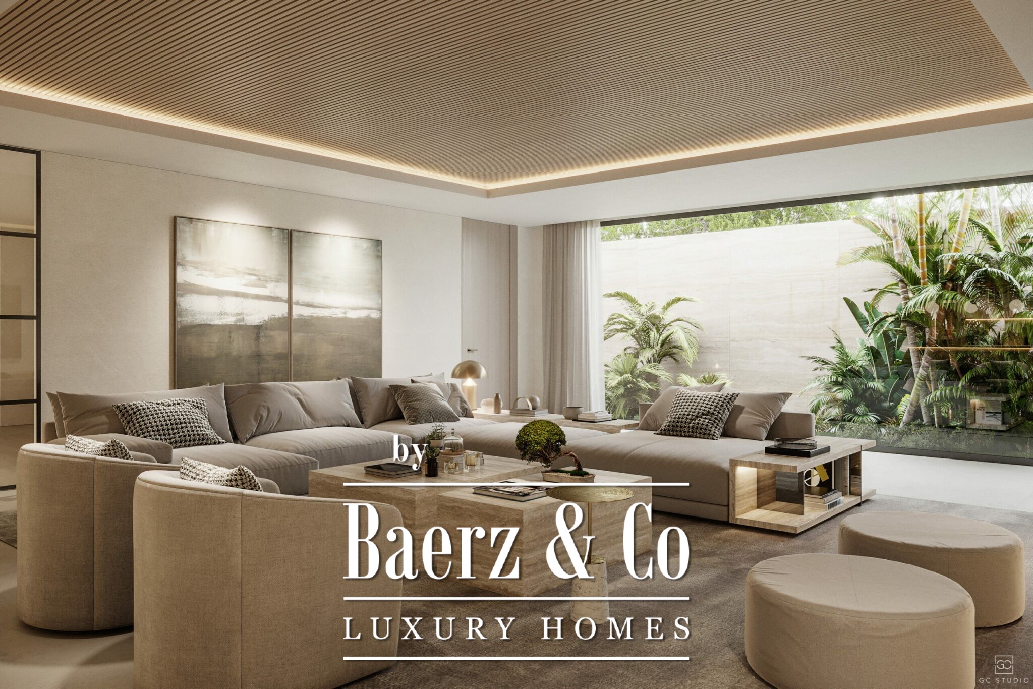 With five bedrooms and six bathrooms, the property is designed for both privacy and convivial gatherings. Features include a private gym, spa and a bespoke wine cellar, expanding the rhythm of home life into wellness and taste. Interior parking for three cars and additional car ports for two more preserve discretion and security. A private swimming pool and rooftop solarium offer distinct moments of leisure.