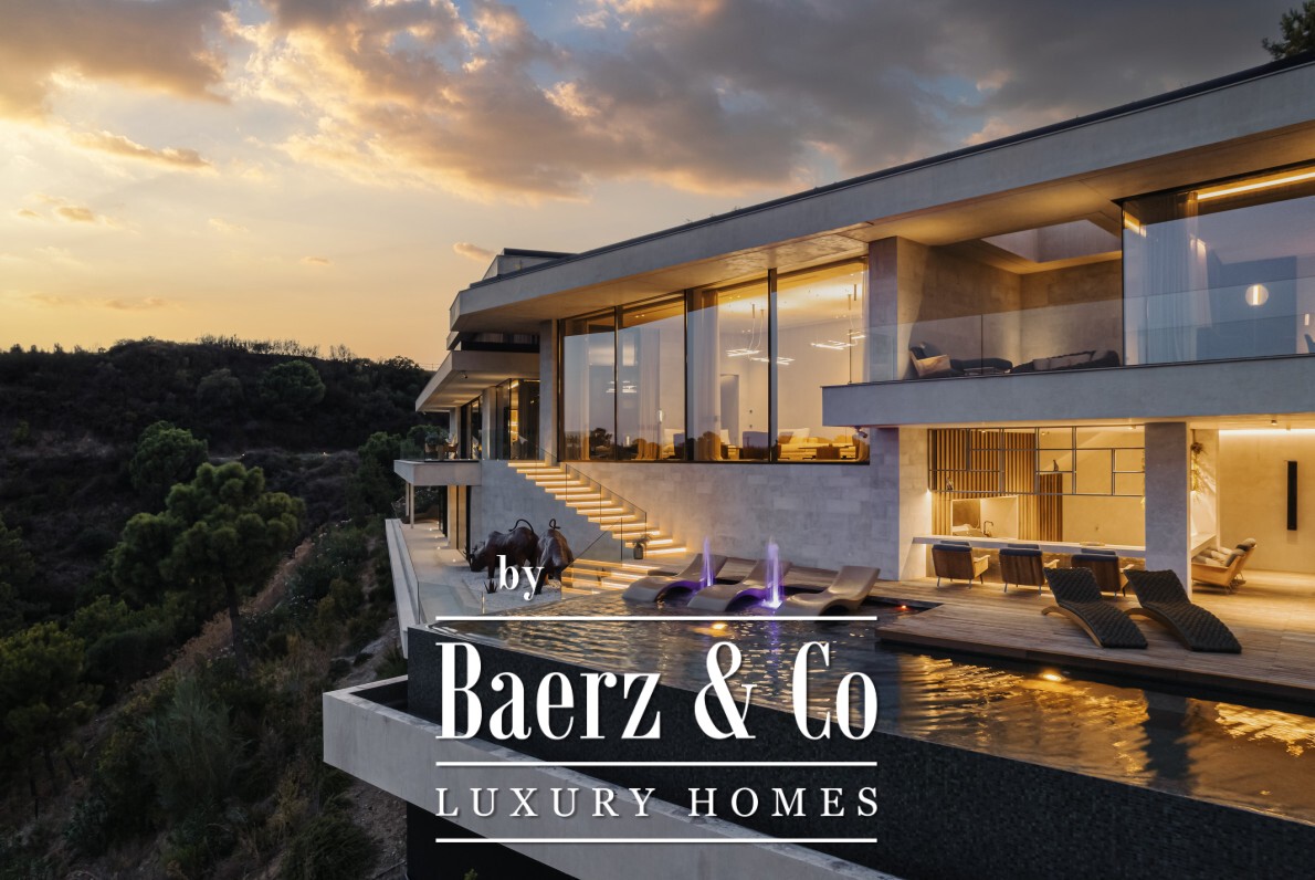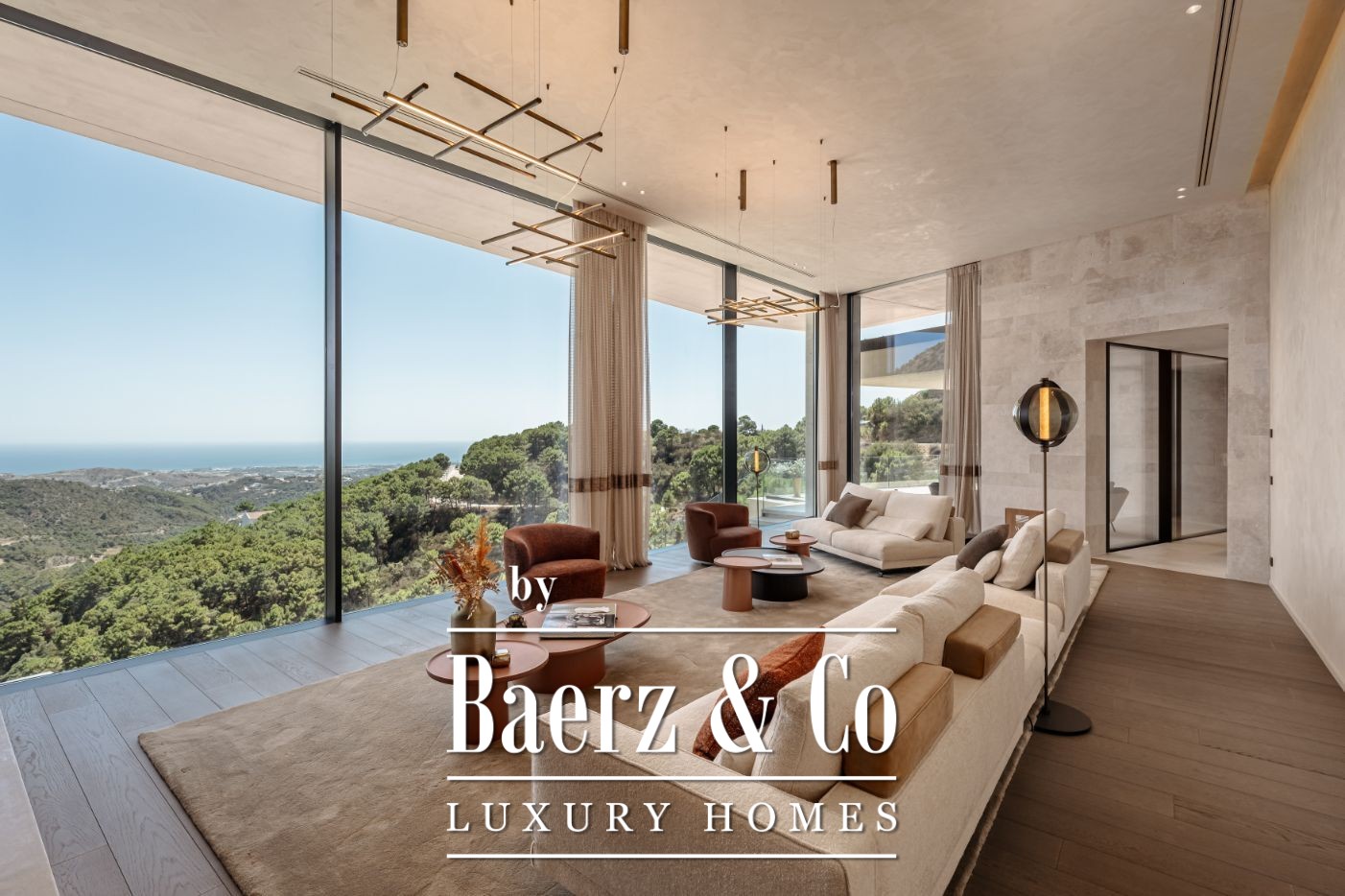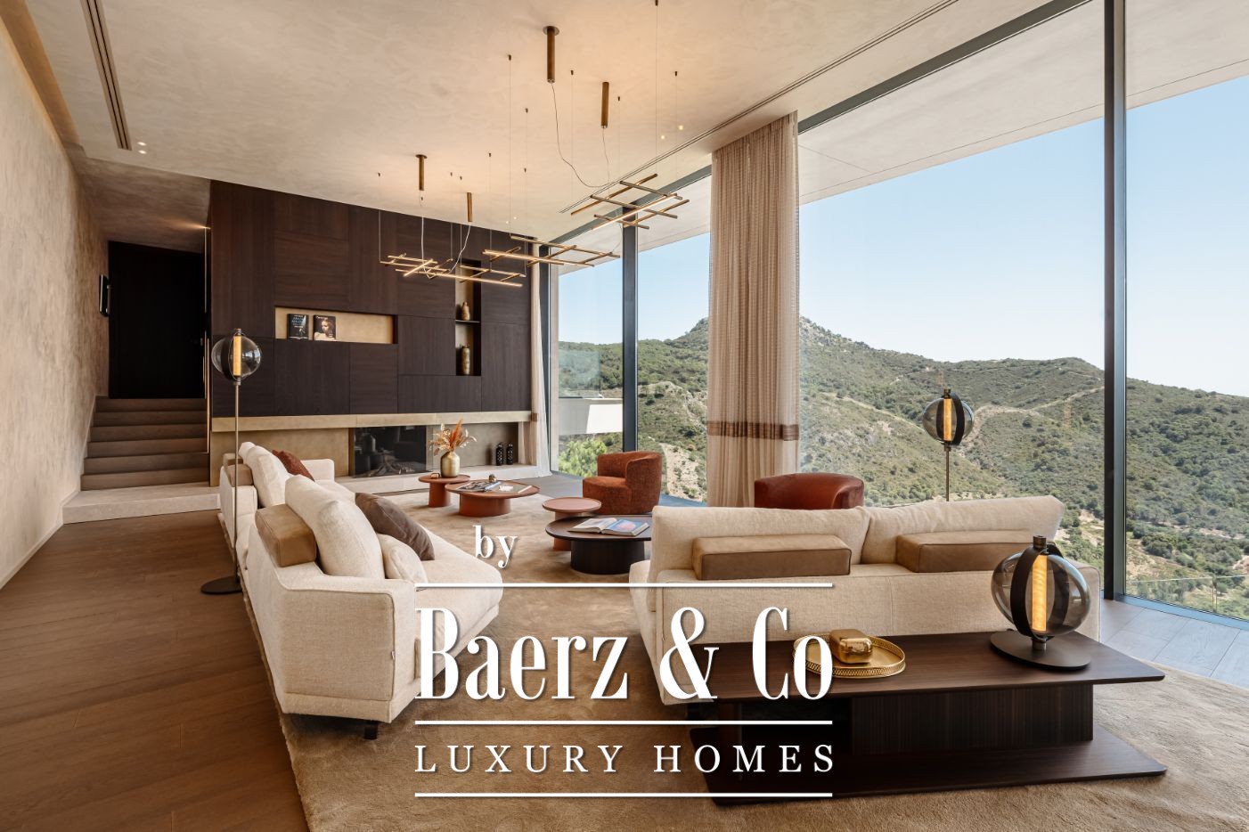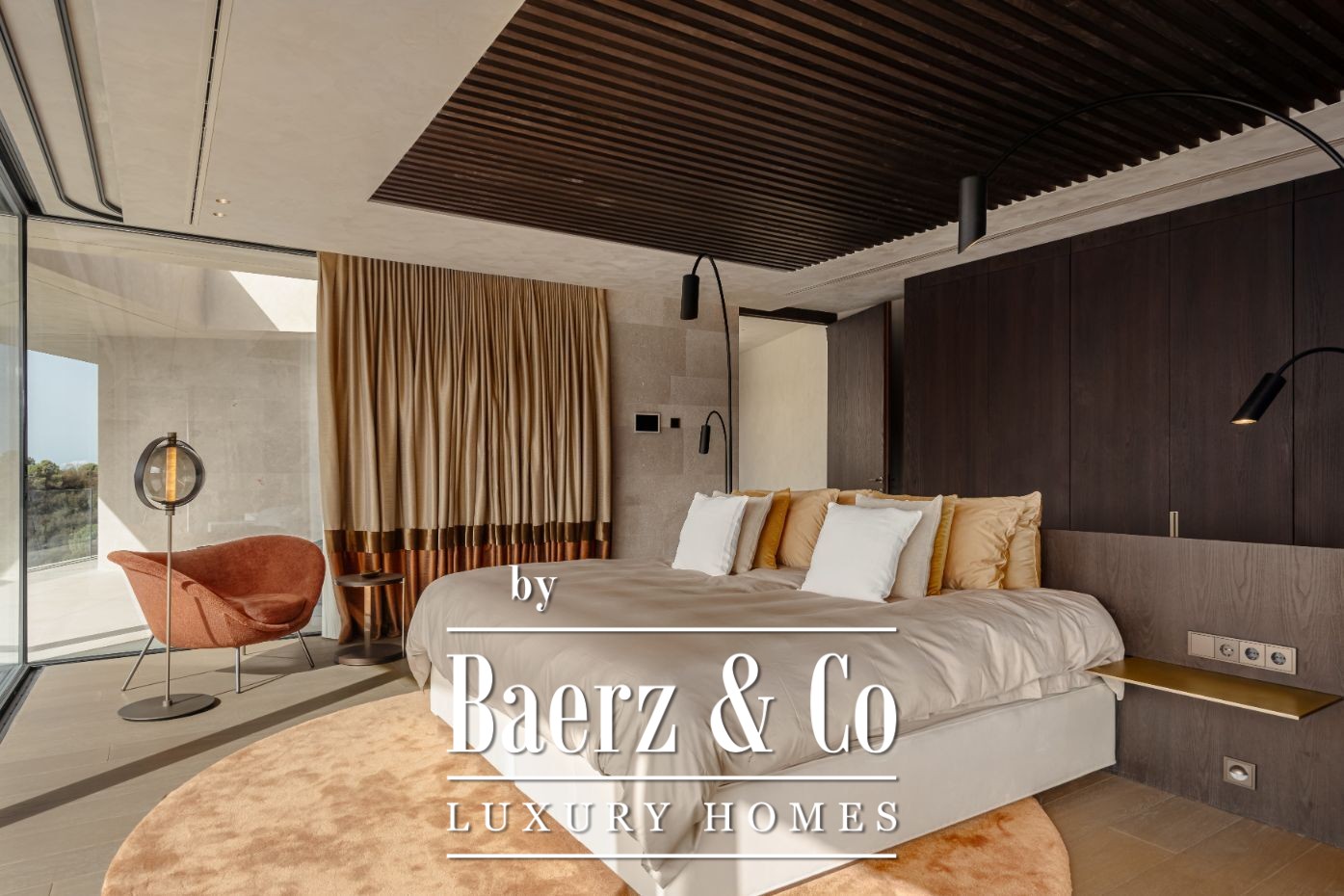 This brand-new contemporary villa is a hidden gem offered for sale in Monte Mayor, Benahavis. The exclusive gated high-end community is nestled within 330 hectares of valleys and hills, more than half of which remains an untouched green belt zone. Surrounded with protected nature and similar luxury properties of Benahavis, the estate with 24hr security is known for its low-density and privacy, pristine nature and stunning vistas of the Mediterranean Sea, Gibraltar and African coast. You will have the glorious lifestyle in the lap of nature in Marbella area, just 15 minutes from the sea and close to all amenities and services, several world-class golf courses, shops, restaurants and bars, beaches and renowned schools.