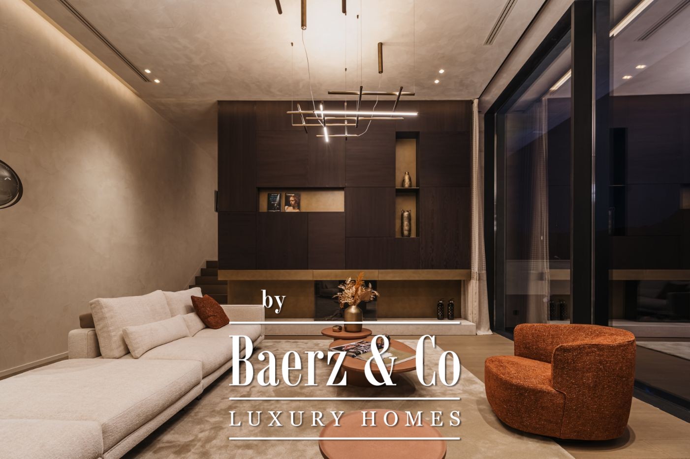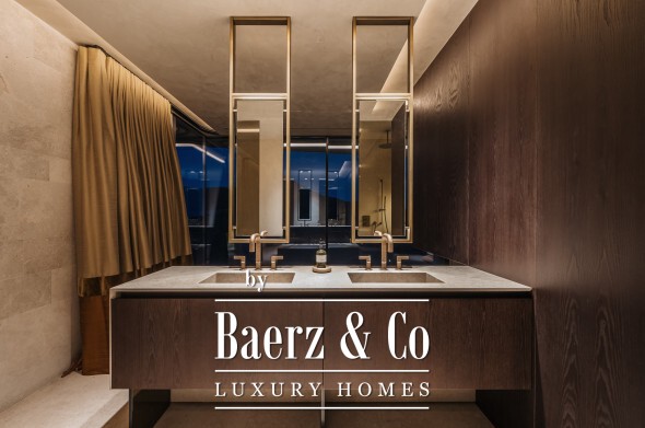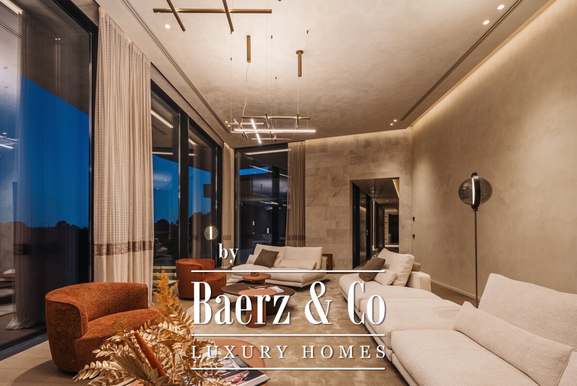 Offerings modern luxury and comfort, the home comes for sale tastefully furnished with high-end Italian furniture by Minotti, Molteni, Gessi and DeCastelli, with superior finishing qualities throughout, sophisticated ceiling and lighting design, multiple gas fireplaces, fitted wardrobes, seamless doors and cupboards, glass patio doors, double-glazing, etc. It benefits from a full Domotic system by Control 4, an integrated sound and video system with stealth speakers for each room (NVidia, Netflix, Tune IN, Tidal, Zapitti, Karaoke), an adaptive AC system and an automatic aromatic diffuser system. 2 elevators are conveniently located in the house, 1 near the kitchens and 1 close to the Master bedroom. There is a possibility to integrate an indoor pool.