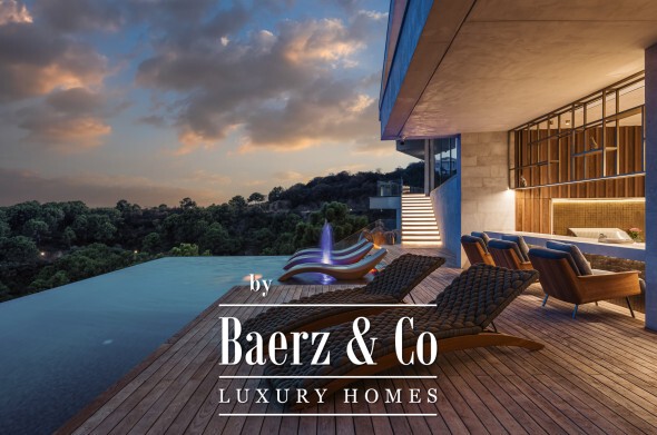 The spectacular house of 1100 m² with 500-m² terraces sits on a large plot of 5.127 m² with an indigenous garden that tolerates drought. It is unique, designed and built for comfort, enjoyment and well-being. The building is fully integrated with the mountains and personalized to the plot, orientation and views. The nature provides an idyllic setting for this luxury property that has a limited footprint on the natural environment and meets an absolute standard of excellence, guided by the principles of sustainable design. It boasts a green roof, solar panels (50 m²) and energy-efficient LED lights. The over-sized picture windows at full ceiling height with Schüco window frames let in the unforgettable, 180 degree panoramic views to the sea and mountains.