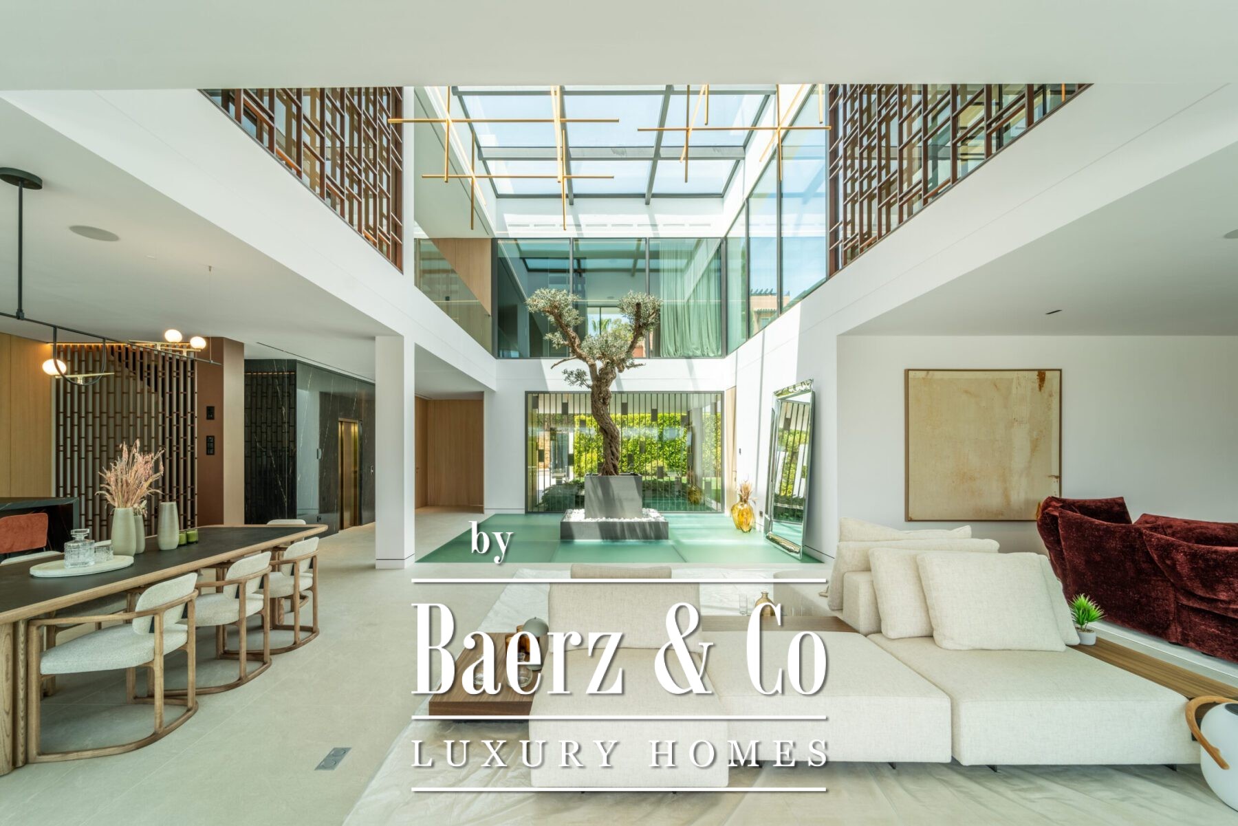 The rooftop solarium, covering 100 m², is dedicated to panoramic dining, a pool, and a tranquil chill-out area—designed for moments set against Marbella’s iconic sunsets. Entertaining is effortless with a cinema room, gym, and a flexible entertainment space in the basement, complemented by a bar, reception area, laundry, and an eight-car garage. Security and comfort are assured with features such as alarm, lift, A/C, UHF, and fireplace.