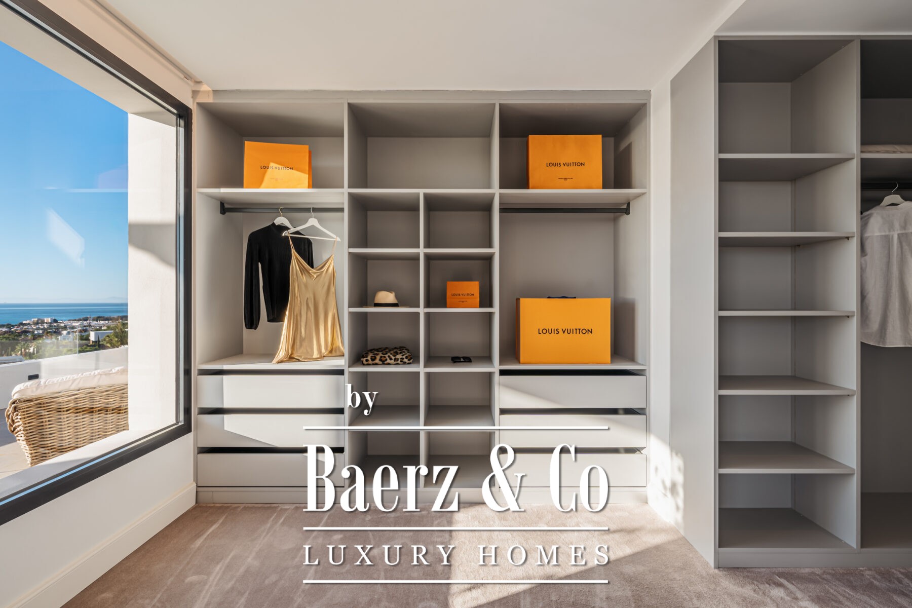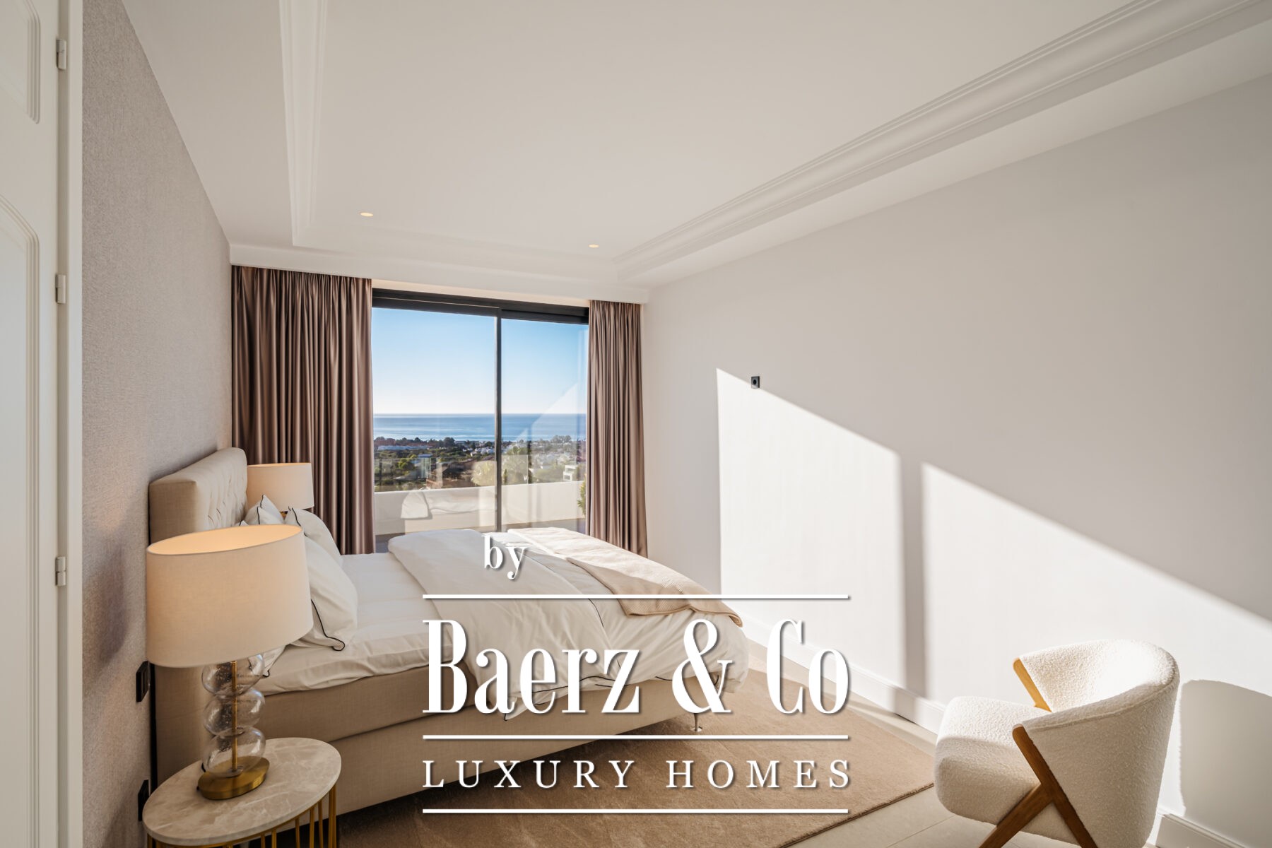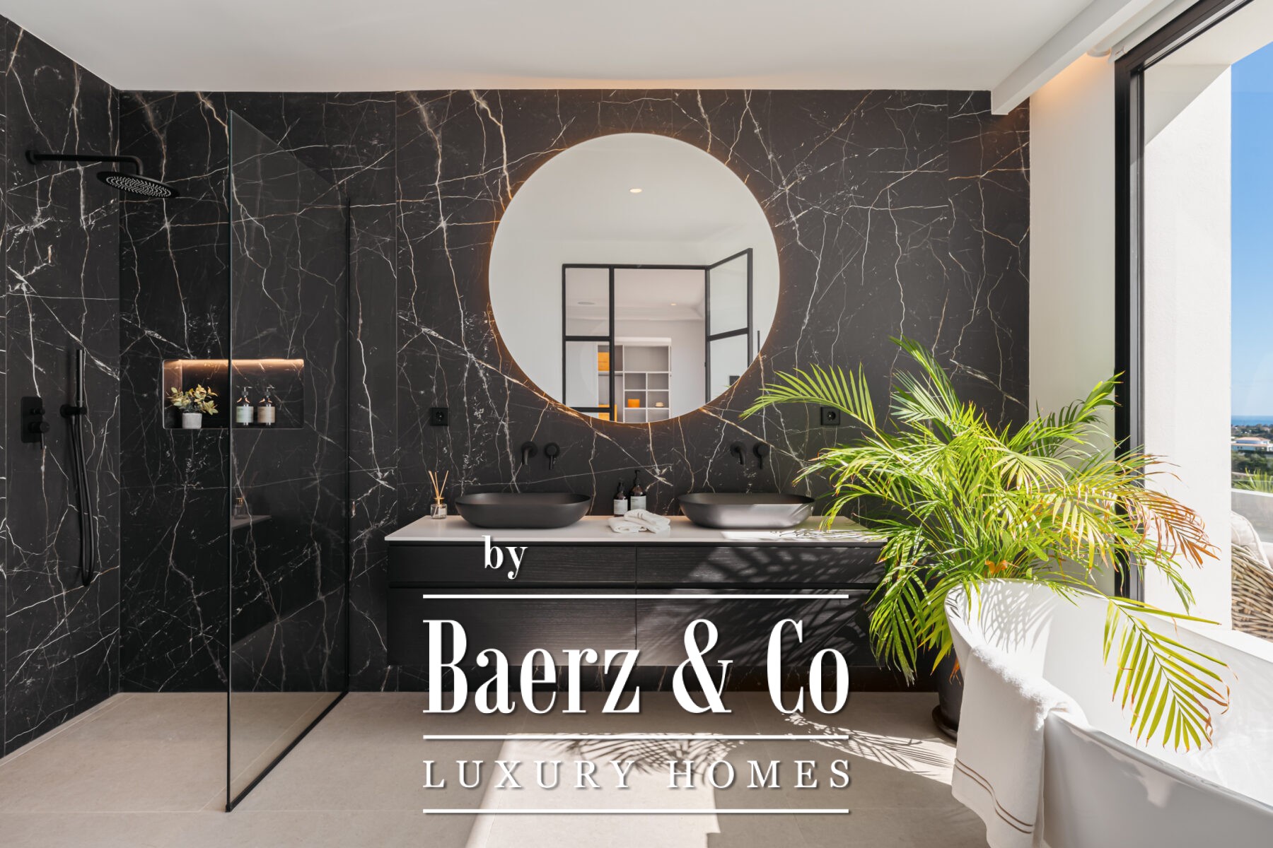 Upstairs, the master suite elevates the experience with a freestanding bathtub orientated towards the horizon, terrace access, and a generous walk-in wardrobe. Two additional en-suite bedrooms ensure absolute privacy for guests and family. On the rooftop, a plunge pool, dining spaces, and kitchen offer a vantage point over sweeping landscapes. The basement level redefines leisure with a wine cellar, cinema, gym, spa with plunge pool, laundry, and capacious garage. Amenities include advanced home automation, security, air conditioning, and proximity to Marbella’s beaches and vibrant social destinations. This luxury villa for sale in Marbella blends architectural finesse, lifestyle, and ease in every detail.