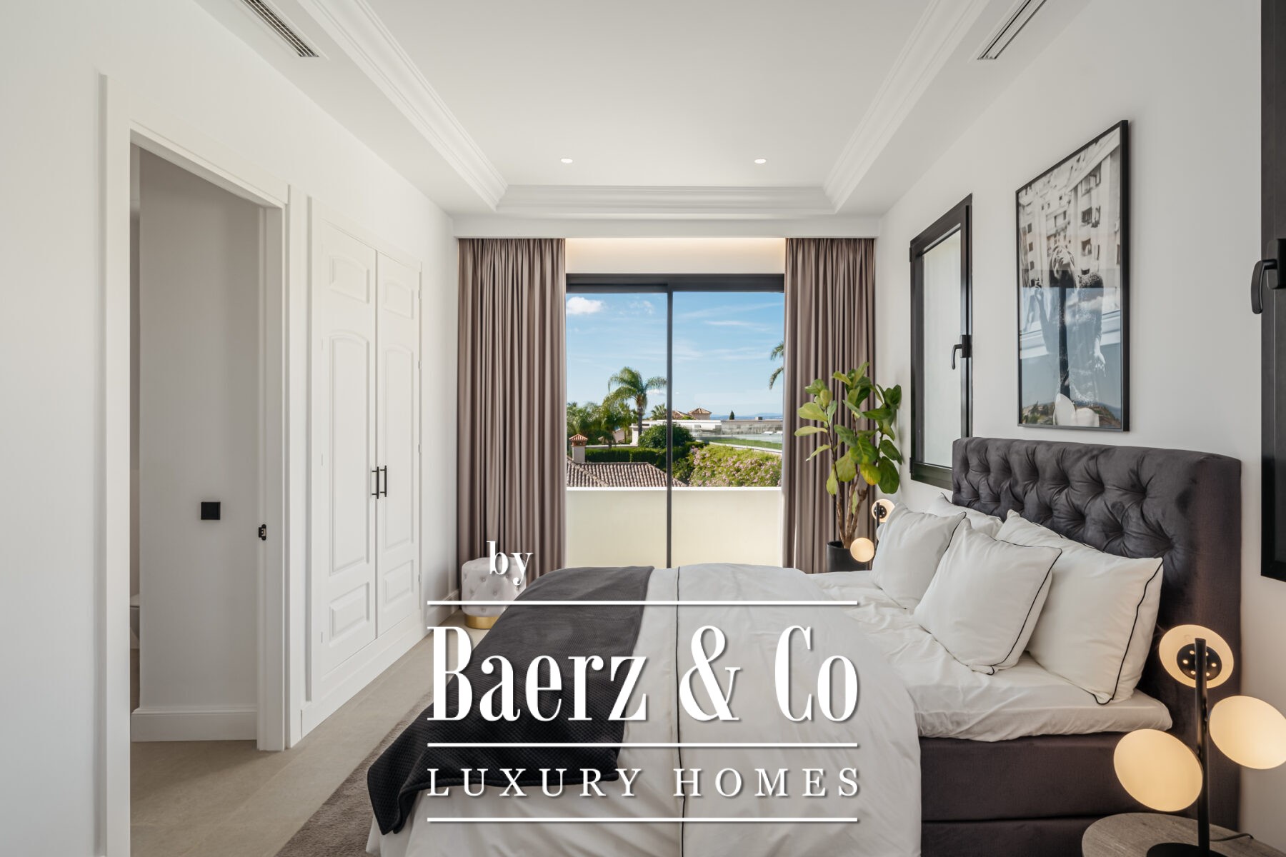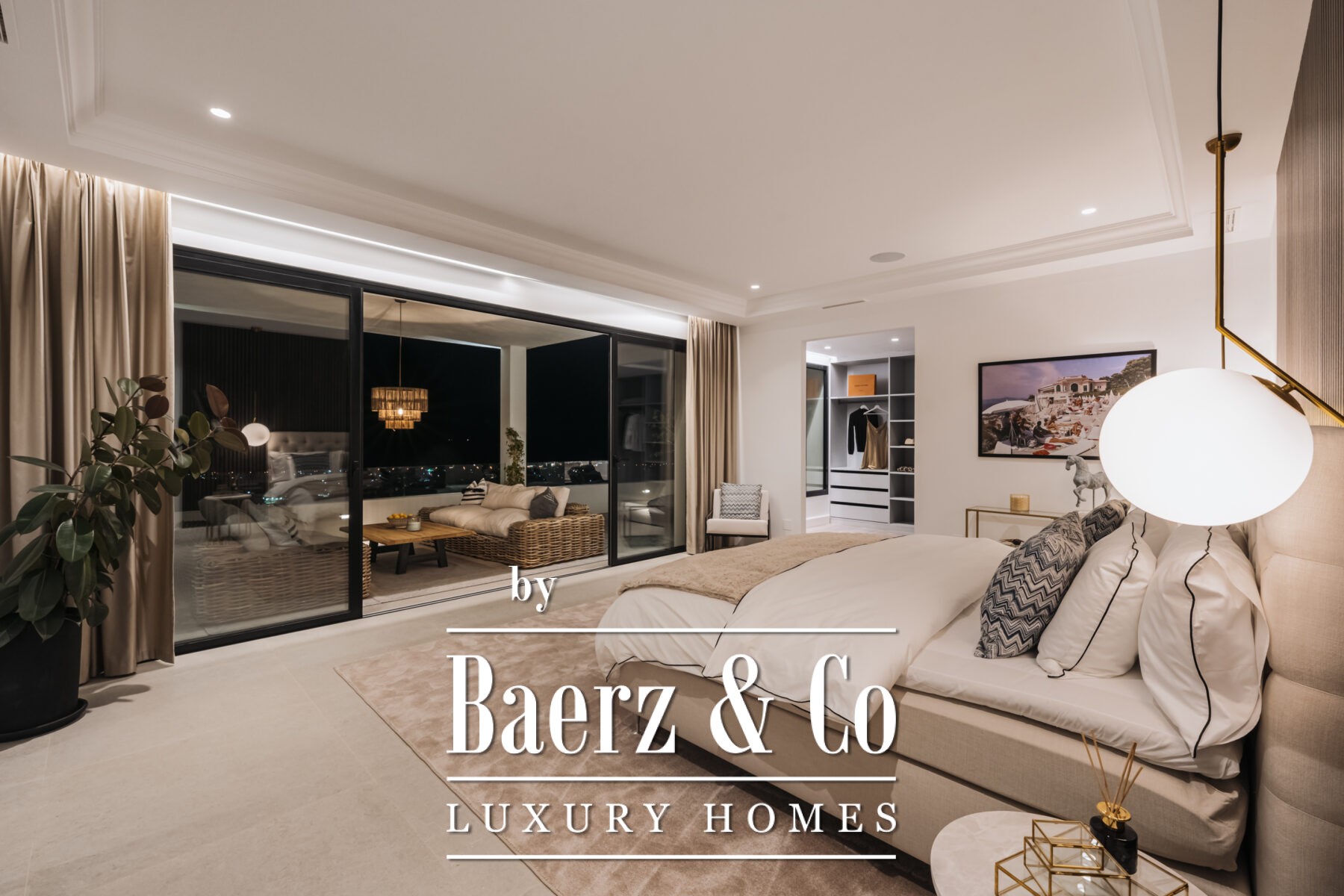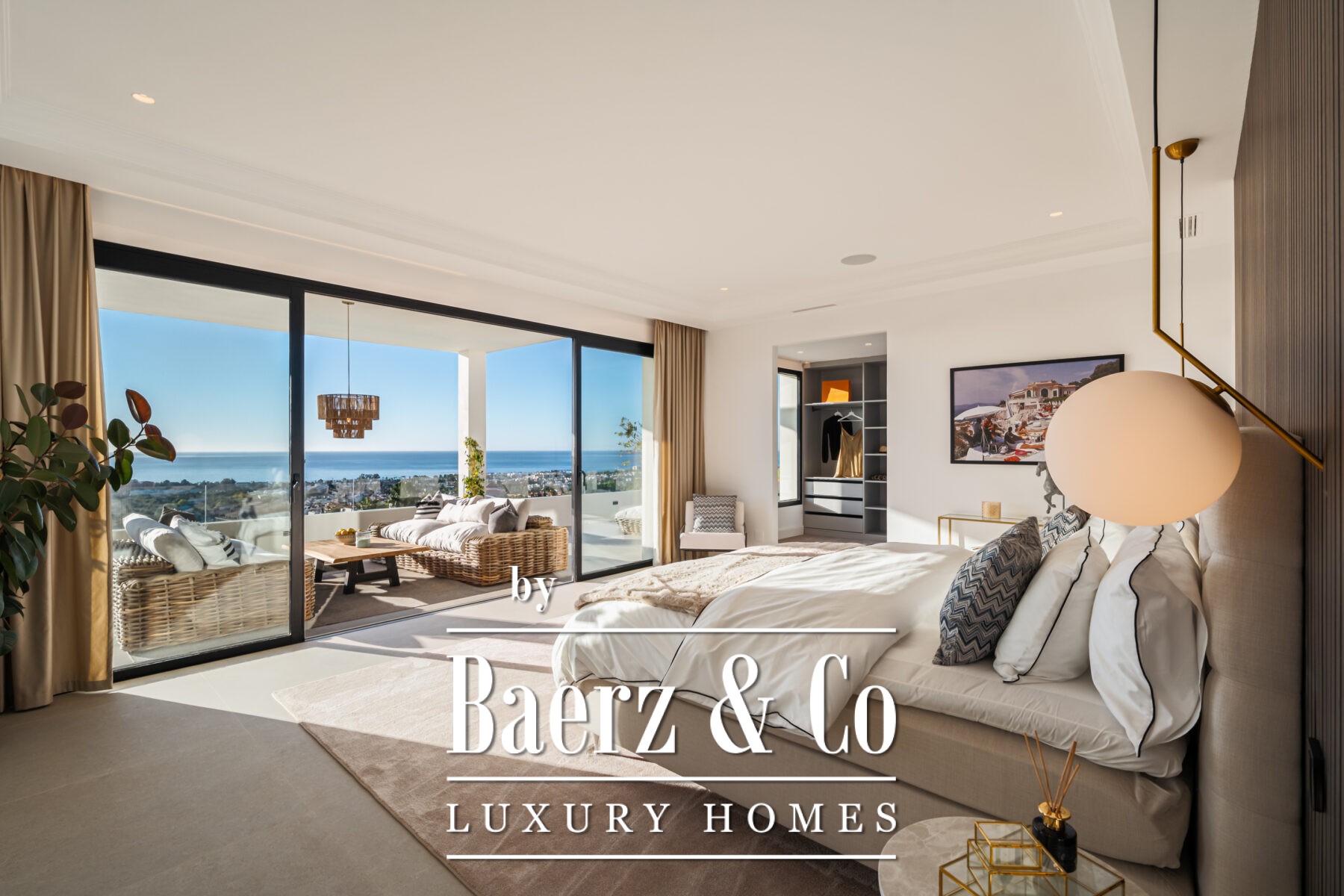 Upstairs, the master suite elevates the experience with a freestanding bathtub orientated towards the horizon, terrace access, and a generous walk-in wardrobe. Two additional en-suite bedrooms ensure absolute privacy for guests and family. On the rooftop, a plunge pool, dining spaces, and kitchen offer a vantage point over sweeping landscapes. The basement level redefines leisure with a wine cellar, cinema, gym, spa with plunge pool, laundry, and capacious garage. Amenities include advanced home automation, security, air conditioning, and proximity to Marbella’s beaches and vibrant social destinations. This luxury villa for sale in Marbella blends architectural finesse, lifestyle, and ease in every detail.