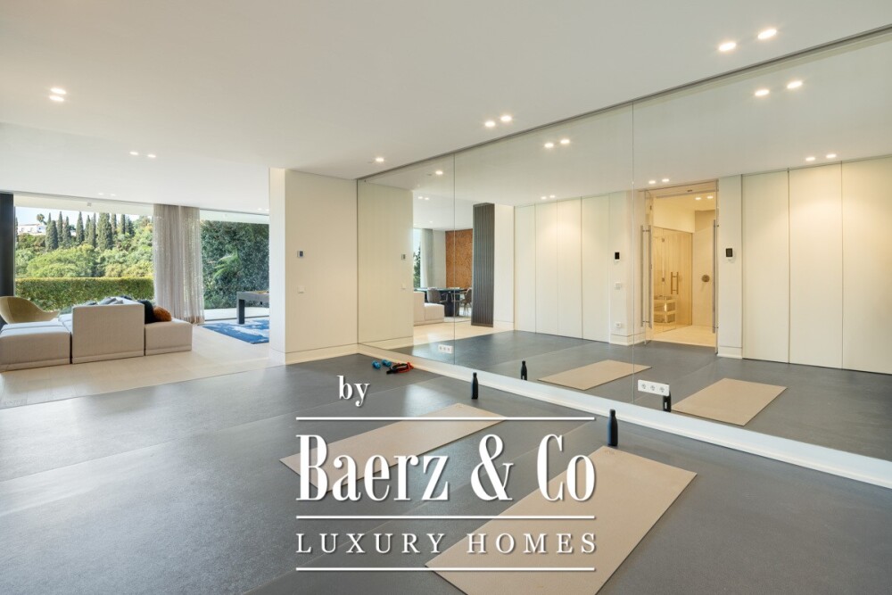 Outdoors, manicured gardens, a private swimming pool, and a Jacuzzi offer sanctuary and space for effortless entertaining. Covered parking and advanced security heighten discretion, while proximity to golf, beaches, and destinations like San Pedro de Alcántara, Puerto Banús, and Nueva Andalucía ensure convenience without compromise. This luxury villa for sale in Marbella is tailored for those seeking refined quality, privacy, and an elevated Mediterranean lifestyle.