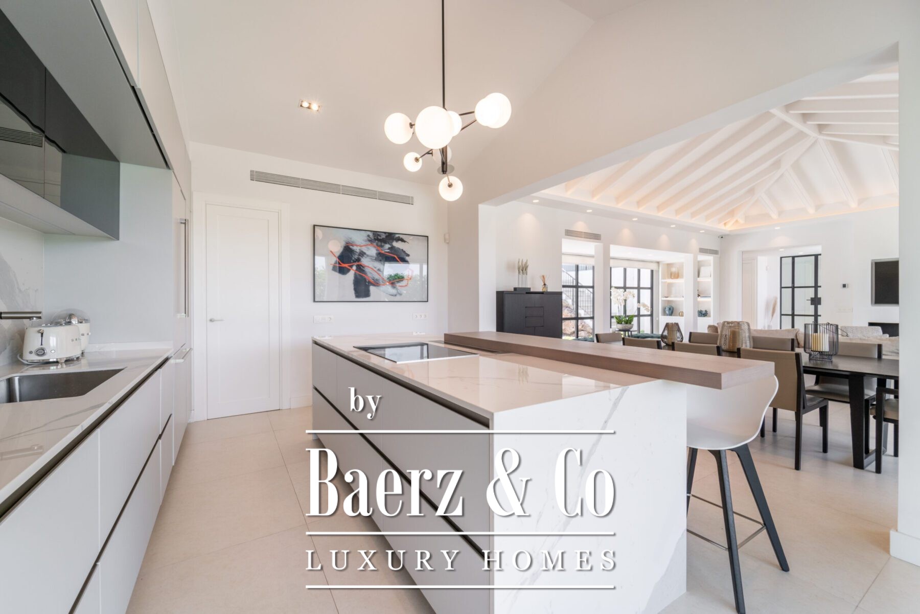 This stunning modern Andalucian villa located in boutique gated community walking distance to Los Naranjos Golf club, offers a modern internal living style, while keeping its Andalucian tiled roof and charm. This beautiful one-level villa set on a south west plot, offers incredible amounts of light and sun all day long.