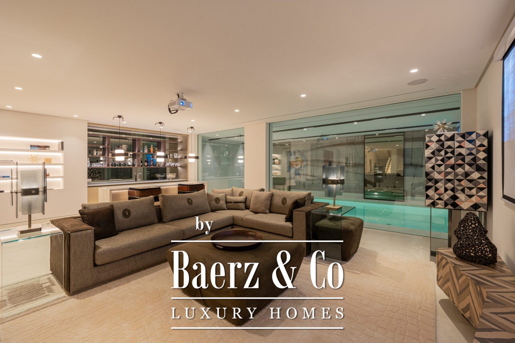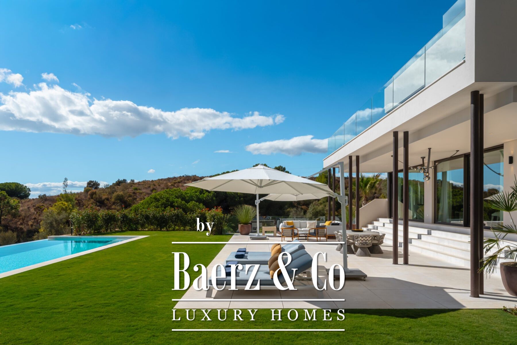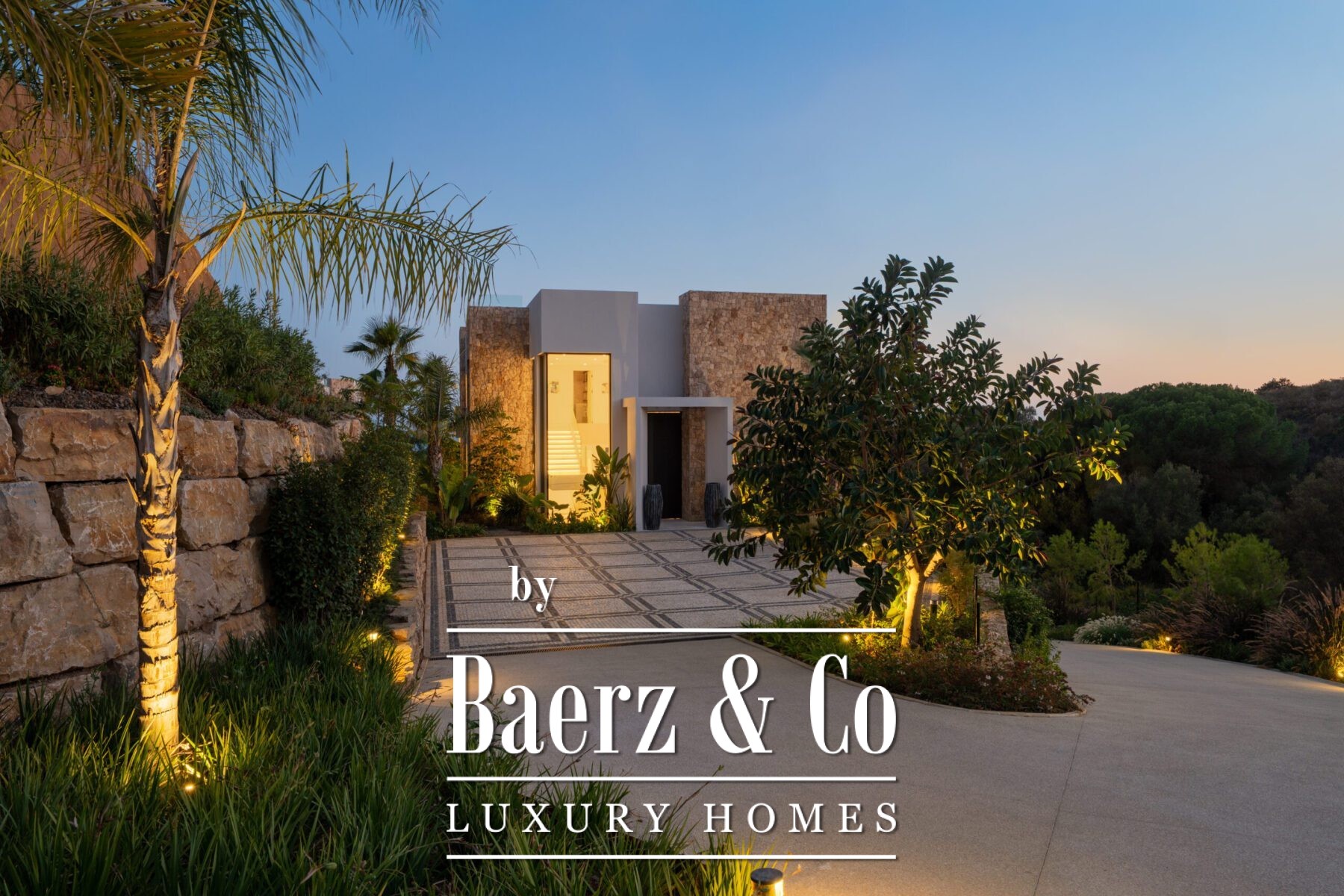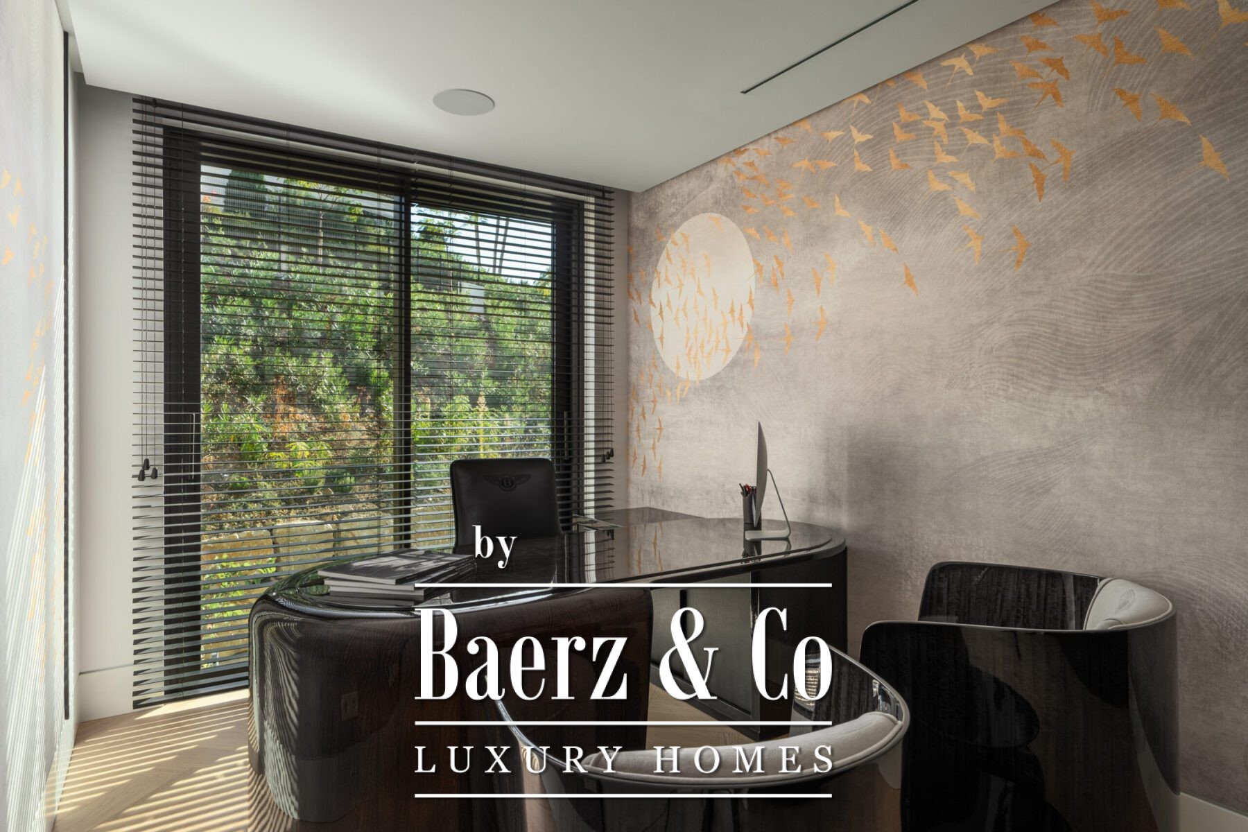 Sophisticated amenities include a home office, bespoke bar, entertainment room, home gym, Turkish bath, indoor pool, and dedicated cinema room. Outdoor space is equally deliberate, offering a private swimming pool, solarium with outdoor kitchenette, and a succession of terraces, all oriented toward panorama views of the Mediterranean and the mountains. With 24-hour security, proximity to golf, the sea, and Marbella's cultural enclave, this luxury villa for sale in Marbella Hill Club articulates discretion and enduring value.