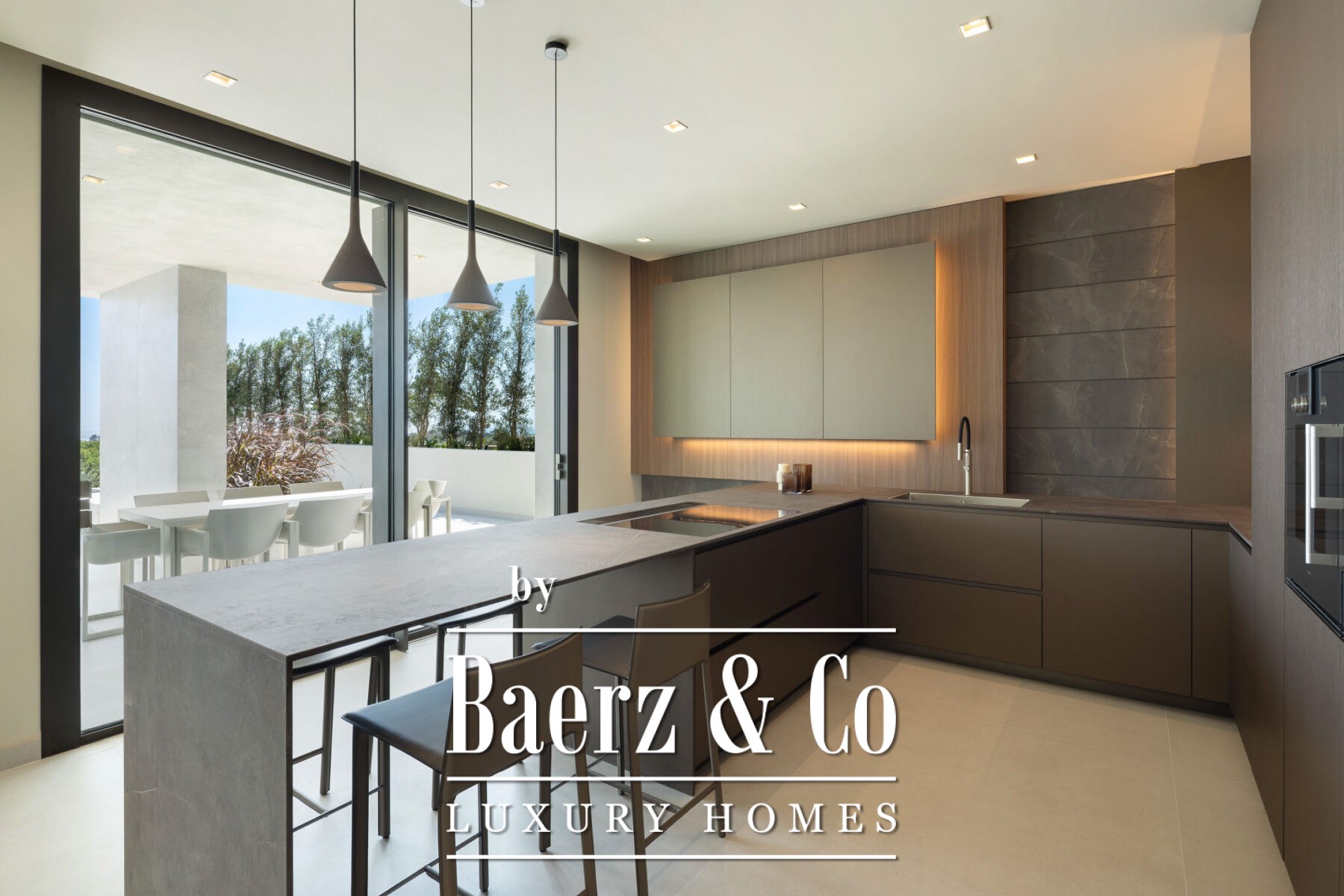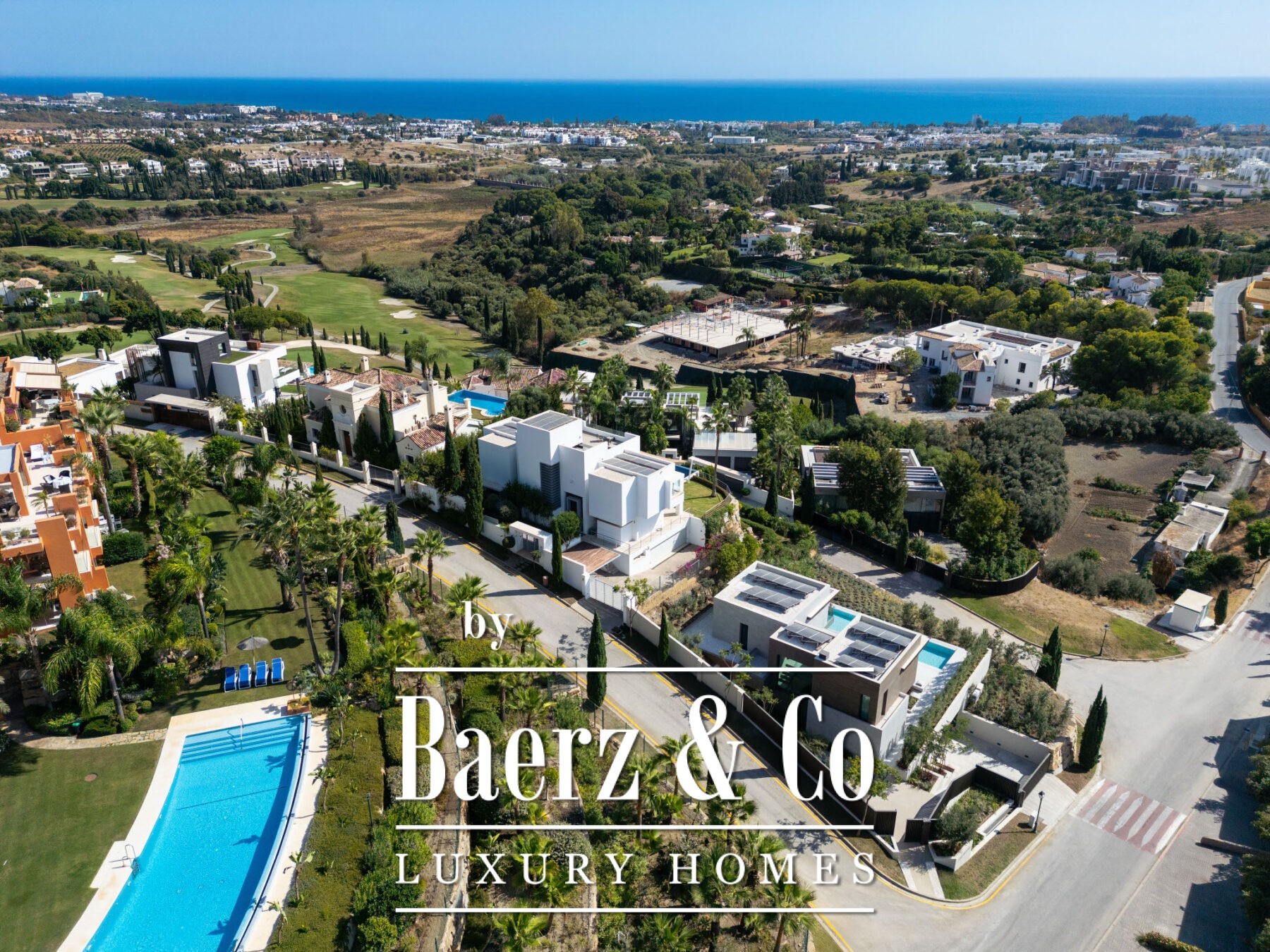 Villa Marbella in Los Flamingos is an architectural sanctuary set within a coveted gated community, embracing 540 m² of refined living space on a 1,330 m² plot. This villa Marbella in Los Flamingos welcomes you with five spacious bedrooms and five bathrooms, balancing sophisticated comfort with a sense of ease. Clean modern lines echo throughout, from the Modulnova kitchen to the polished concrete staircase and expansive Schüco windows, opening interiors to the Andalusian light.