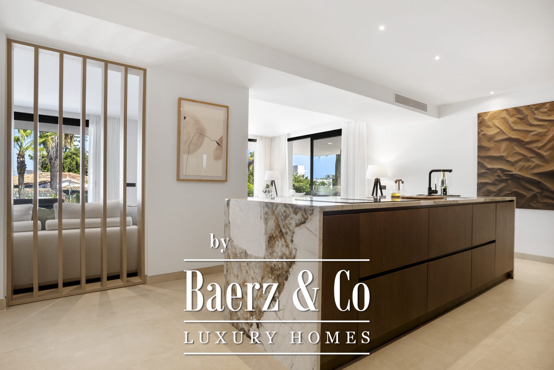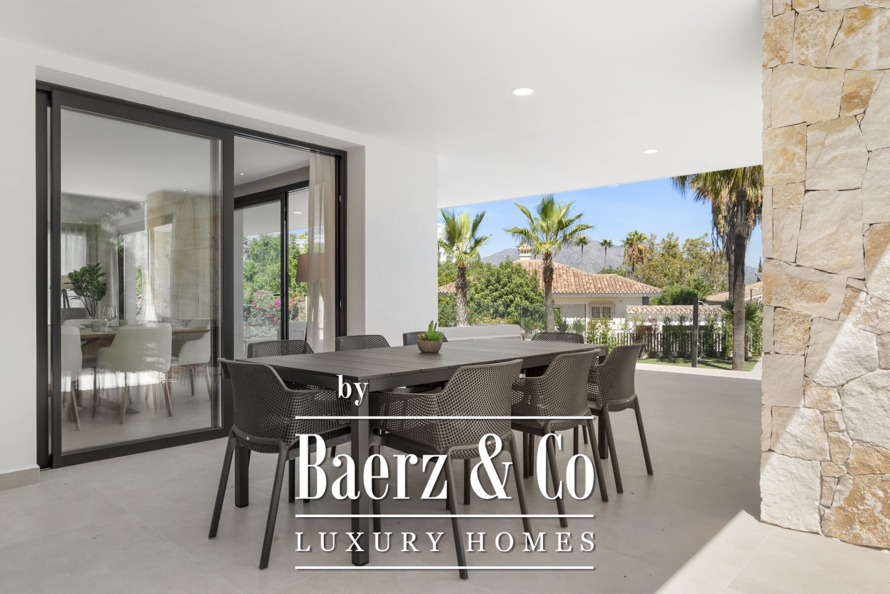 Villa Marbella with sea and mountain views welcomes you to an atmosphere of refined Mediterranean living. Ideally situated within walking distance of Guadalmina Golf Club and only minutes from the coastline, this 320 m² villa offers both seclusion and accessibility in Marbella’s coveted surroundings.