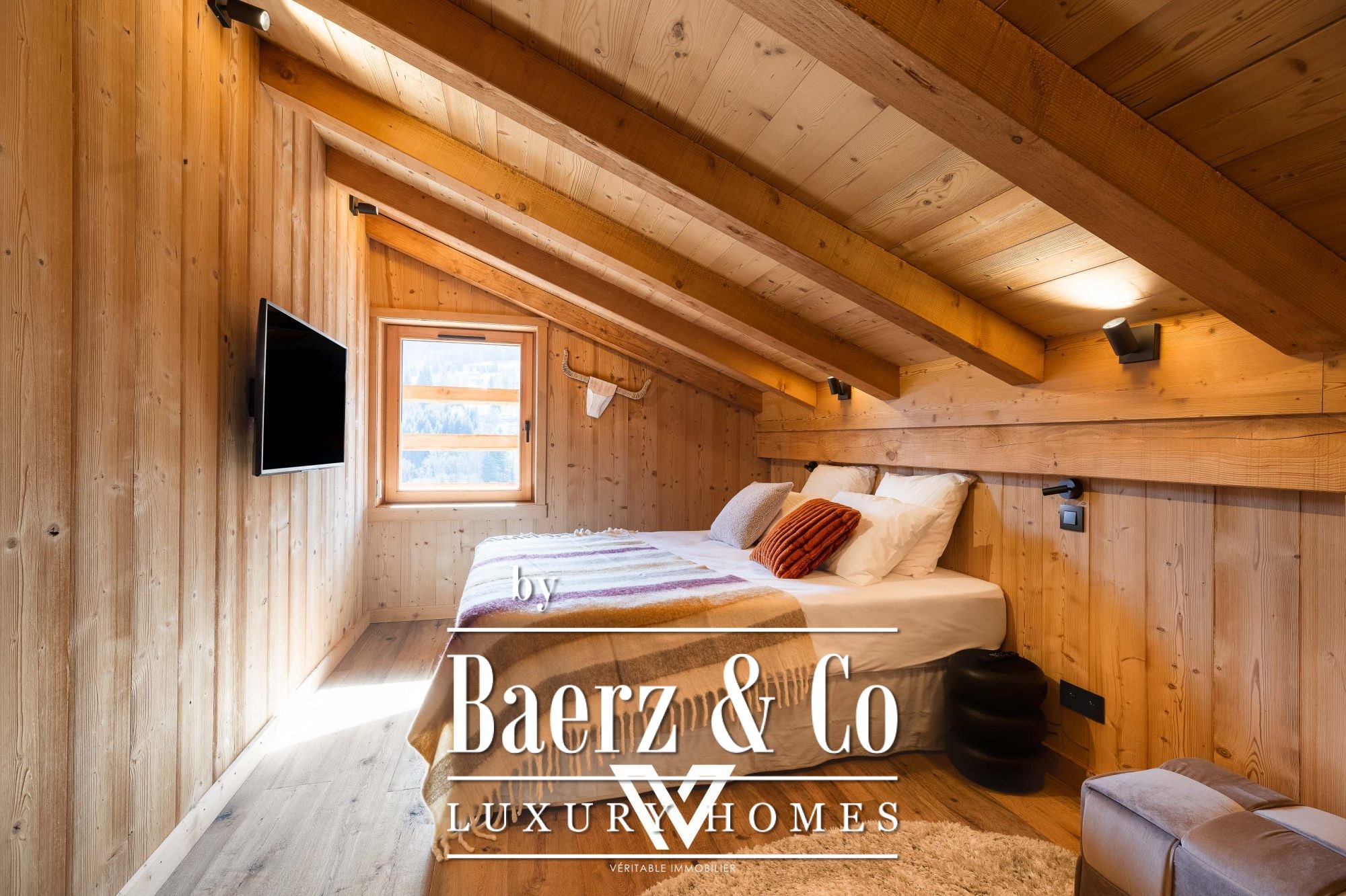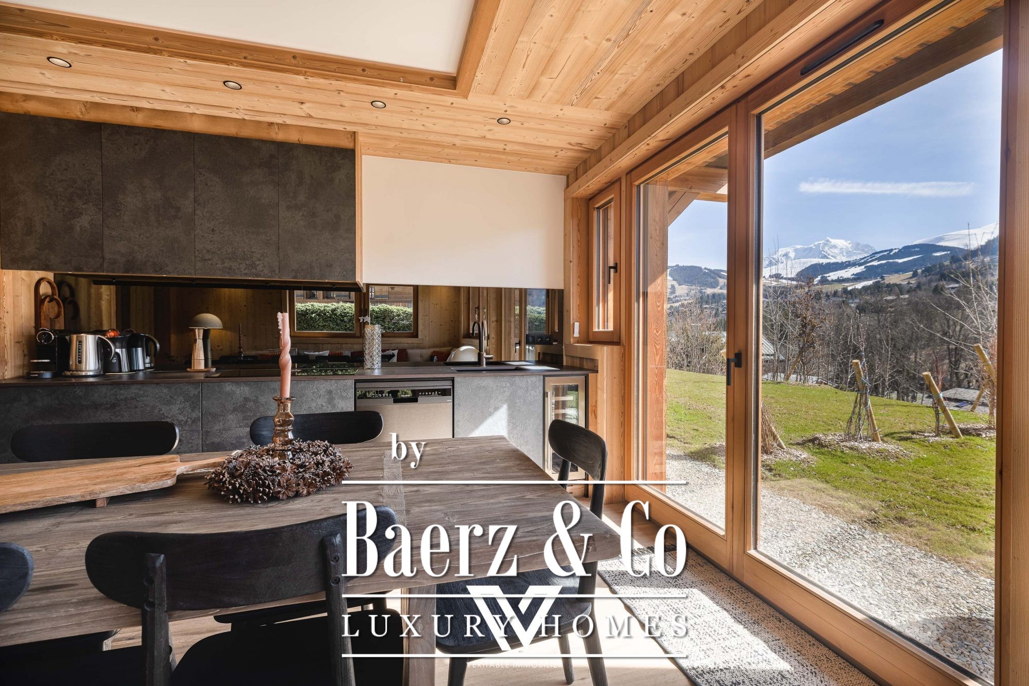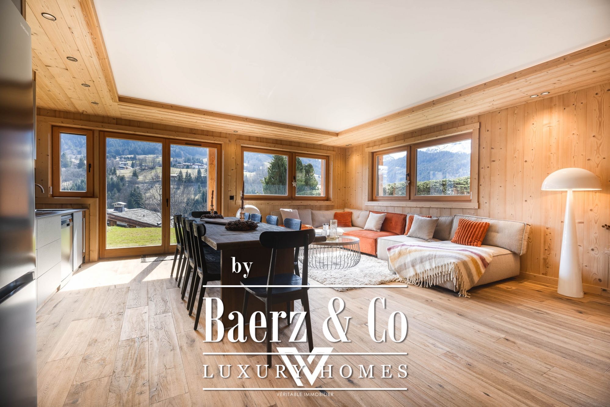 Semi chalet Megève offers a striking introduction to life at altitude, capturing breathtaking panoramas of Mont Blanc and a triple aspect orientation to the east, south, and west. This brand-new property of 222 m² is distinguished by its natural light, with every room welcoming the changing atmosphere throughout the day. The chalet’s four levels are thoughtfully composed: inviting living areas, two floors devoted to restful bedrooms and refined bathrooms, and a lower level dedicated to leisure, featuring a games room, dormitory, sauna, and laundry. The master suite exemplifies quiet luxury, while balconies and a landscaped garden frame astonishing alpine views.