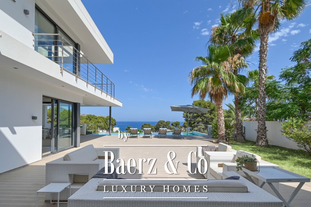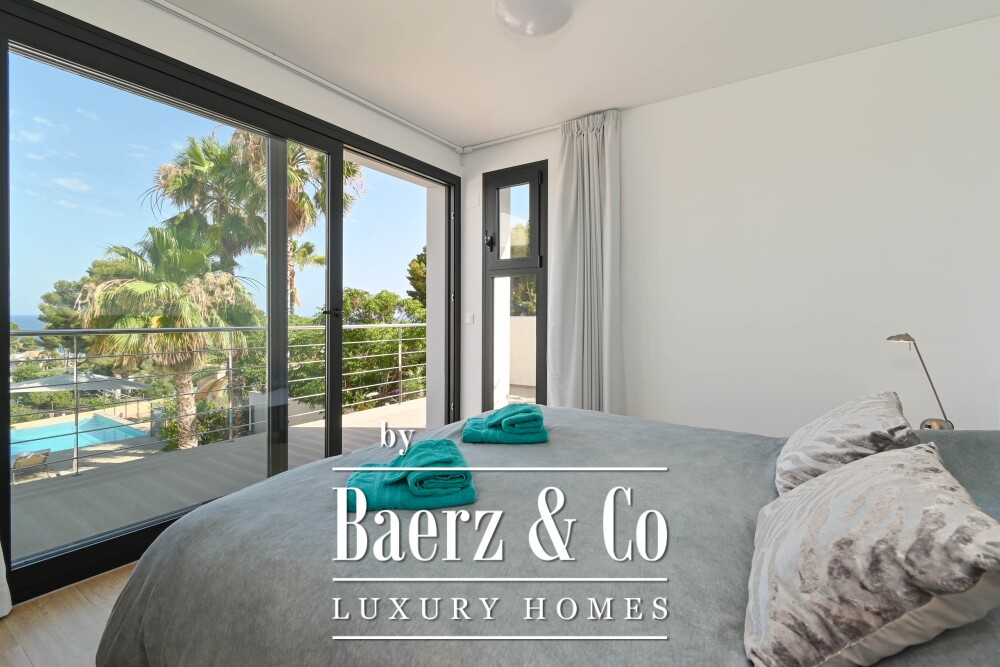 Just a short walk from the beach and the charming restaurants of Moraira, discover this modern villa with breathtaking sea views