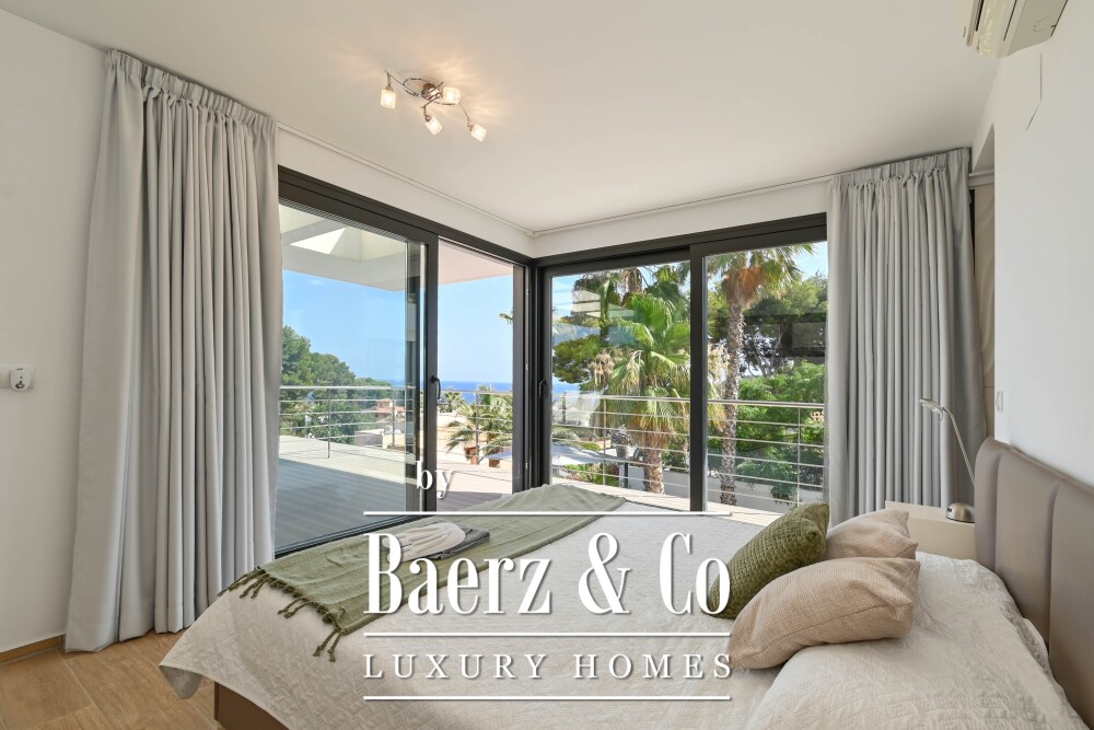 Outdoors, you can enjoy a large terrace, an inviting swimming pool, and of course, the spectacular views of the Mediterranean Sea. The double garage provides extra comfort and storage space.