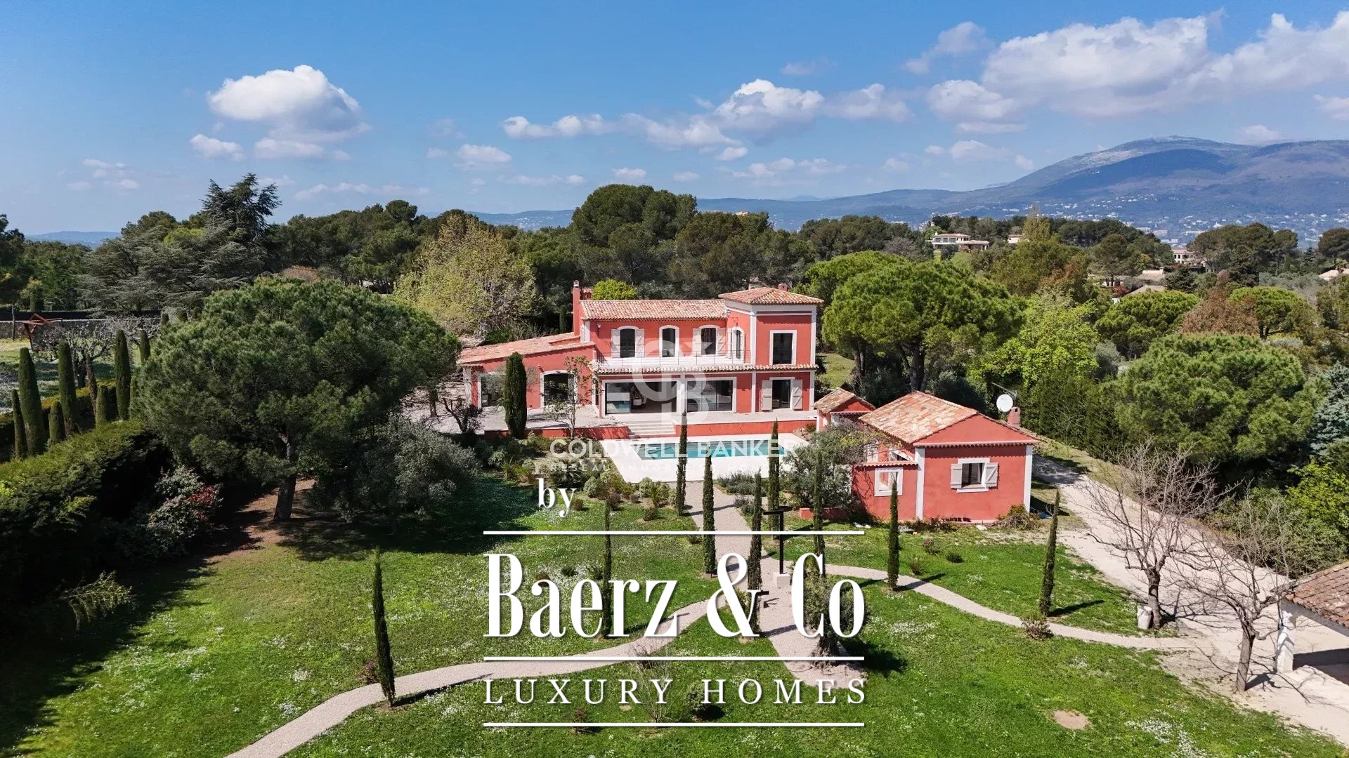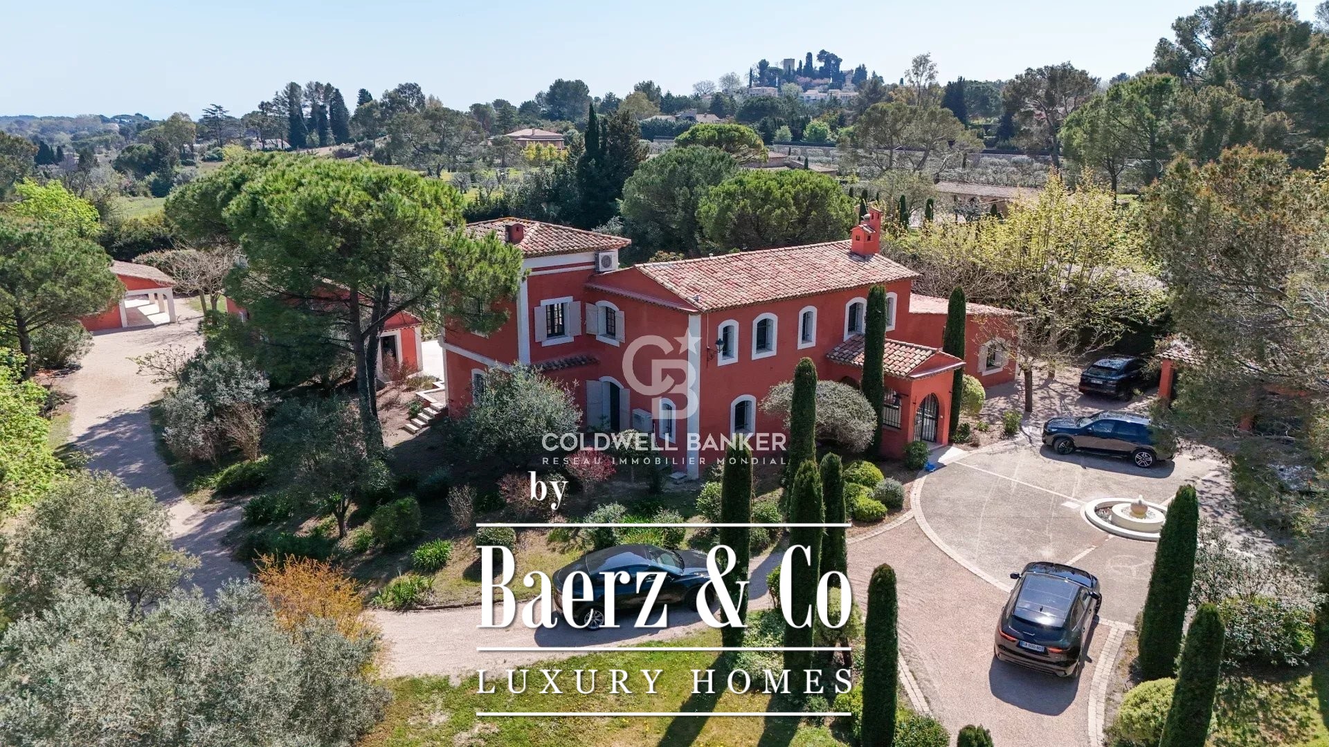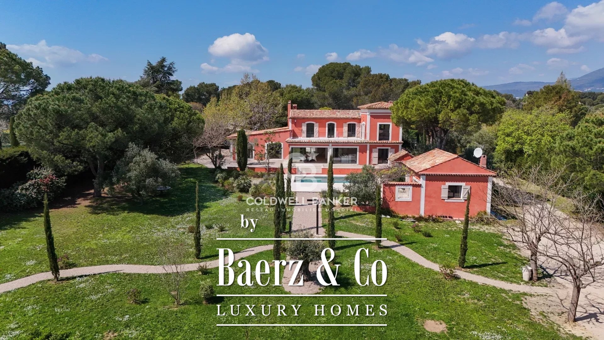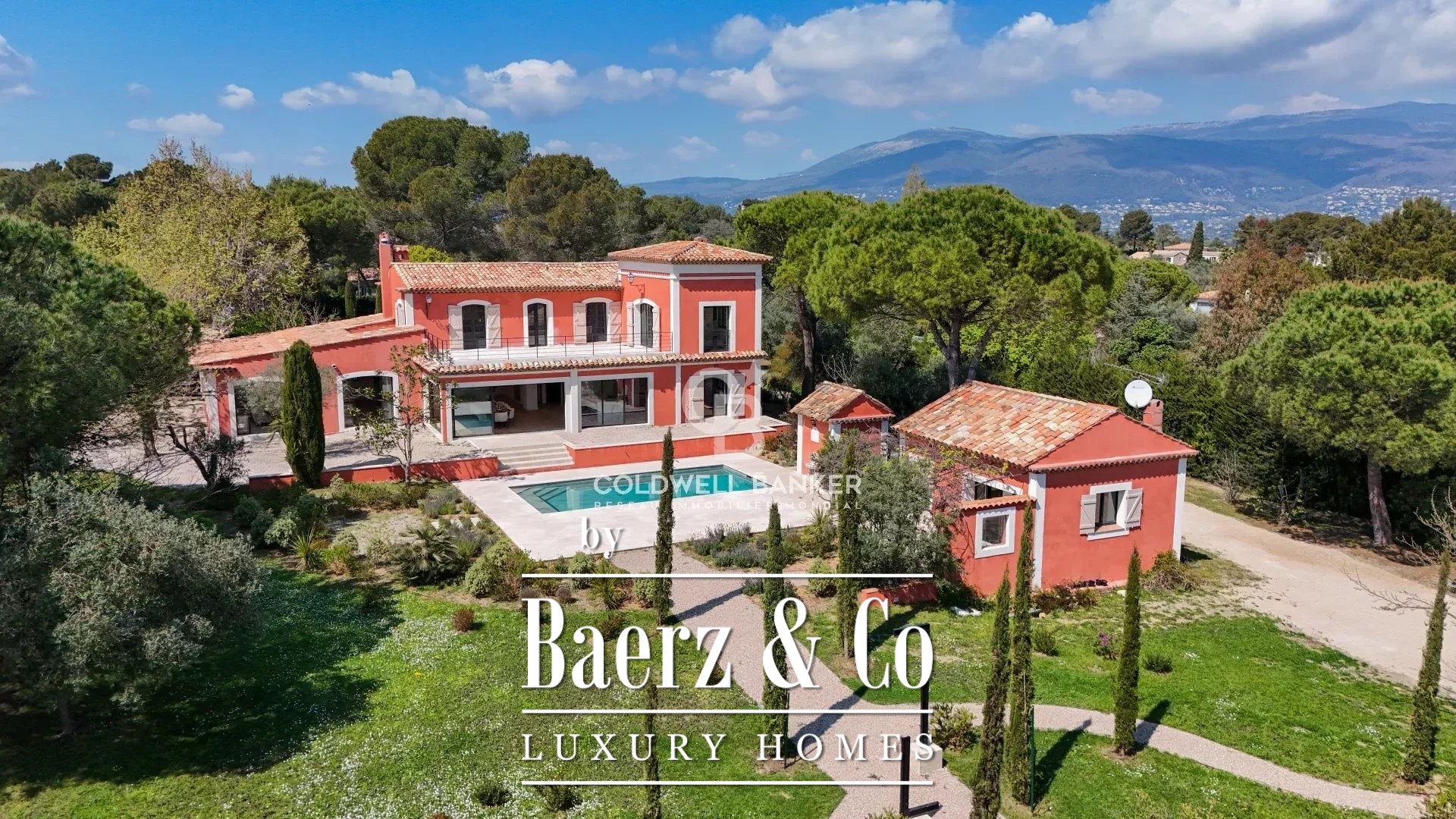 In a very sought after area, quiet and close to international schools, superb Tuscan property of about 400 m2 located on a landscaped plot of 5545m2 with swimming pool. Offering superb volumes, it consists on the ground floor of an entrance hall, a living room with fireplace, a dining room, a fully equipped kitchen, and two bedrooms en suite. On the first floor, a bedroom en