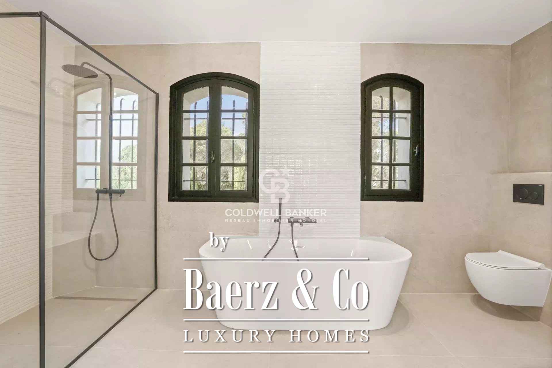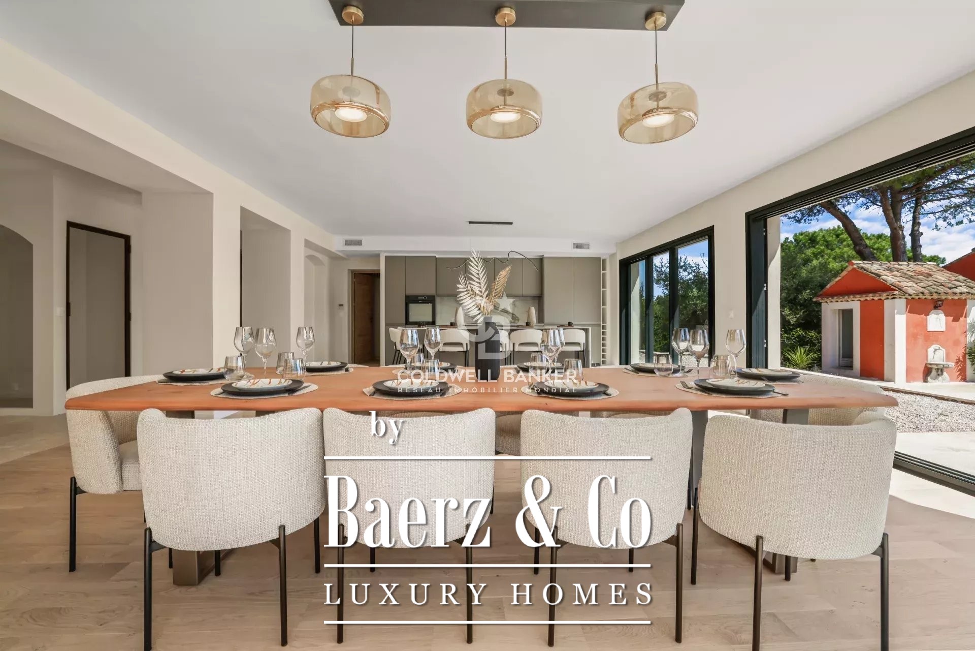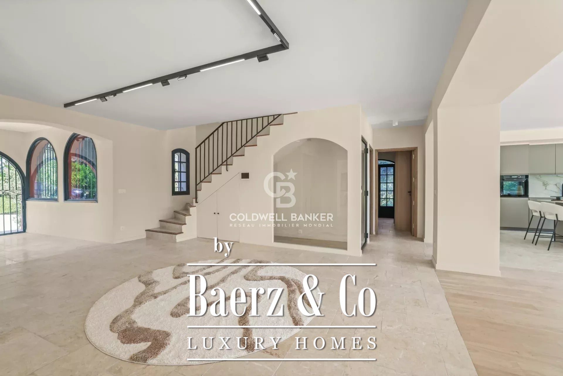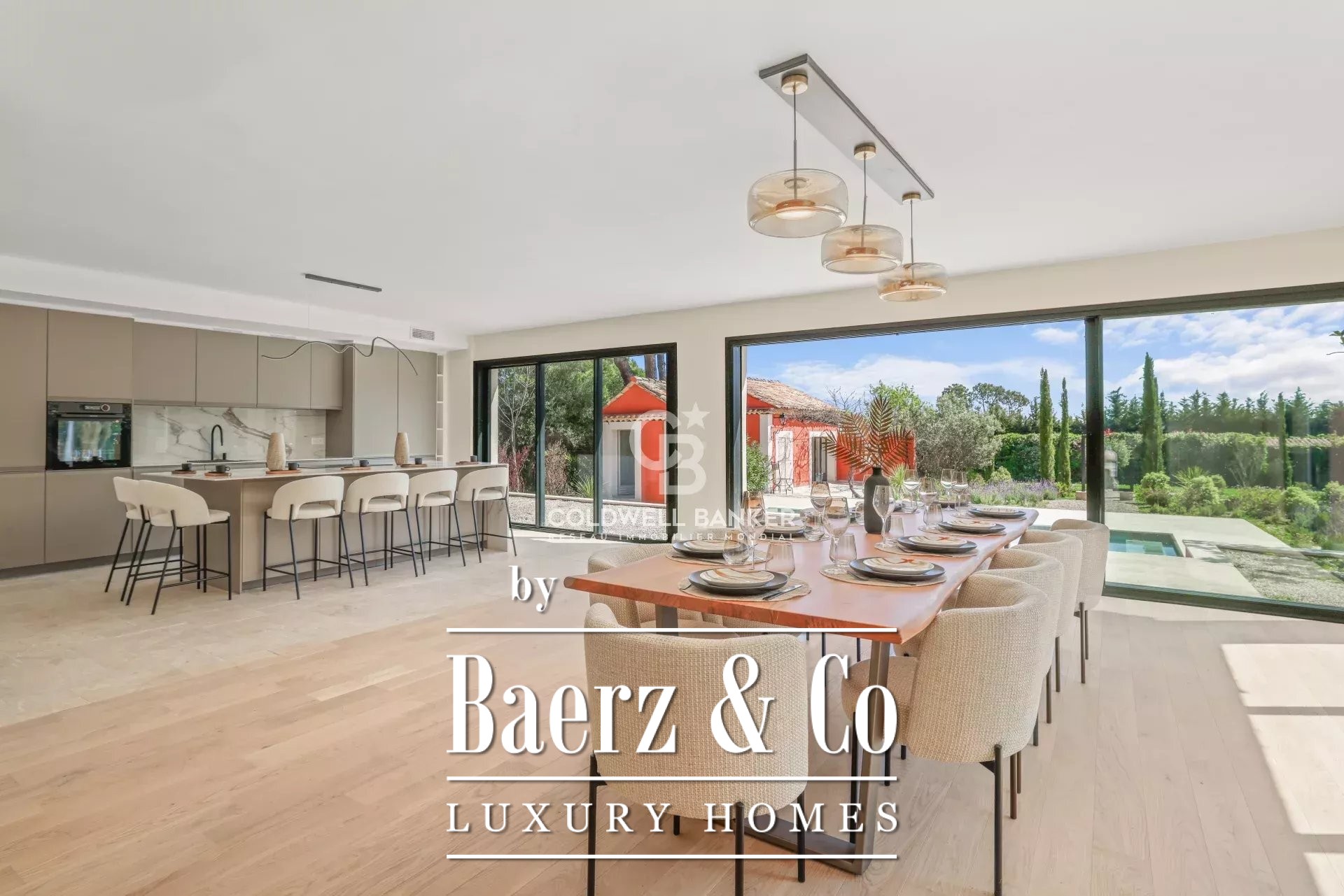 In a very sought after area, quiet and close to international schools, superb Tuscan property of about 400 m2 located on a landscaped plot of 5545m2 with swimming pool. Offering superb volumes, it consists on the ground floor of an entrance hall, a living room with fireplace, a dining room, a fully equipped kitchen, and two bedrooms en suite. On the first floor, a bedroom en