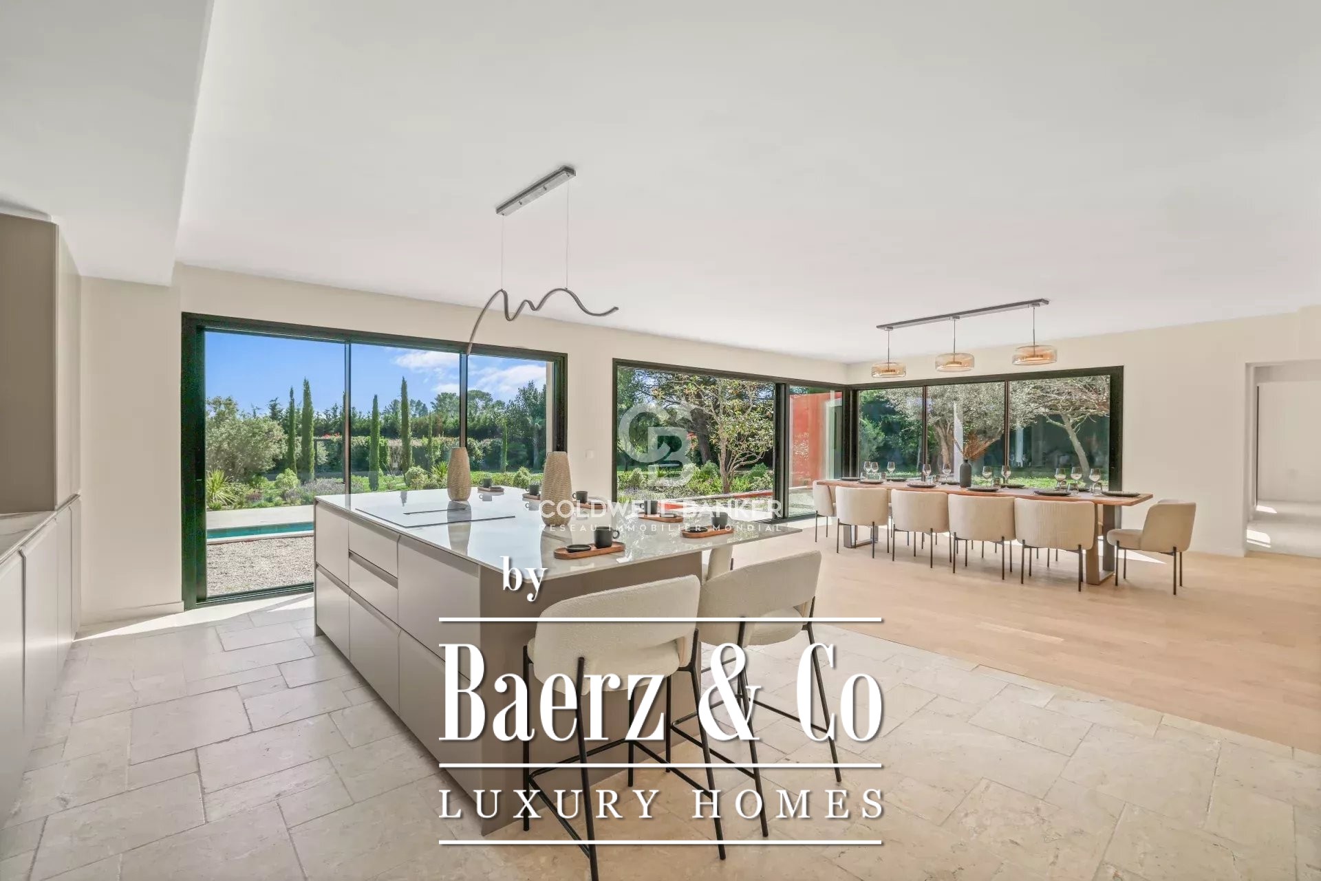 suite with dressing room opening onto a terrace and a master space with dressing room and full bathroom opening onto the terrace. Two guest houses, each with a bedroom and shower room, and possibility of an additional bedroom or gym. A play room with a cinema area, a laundry room, a wine cellar as well as a double garage and a garden shed complete this turnkey property!