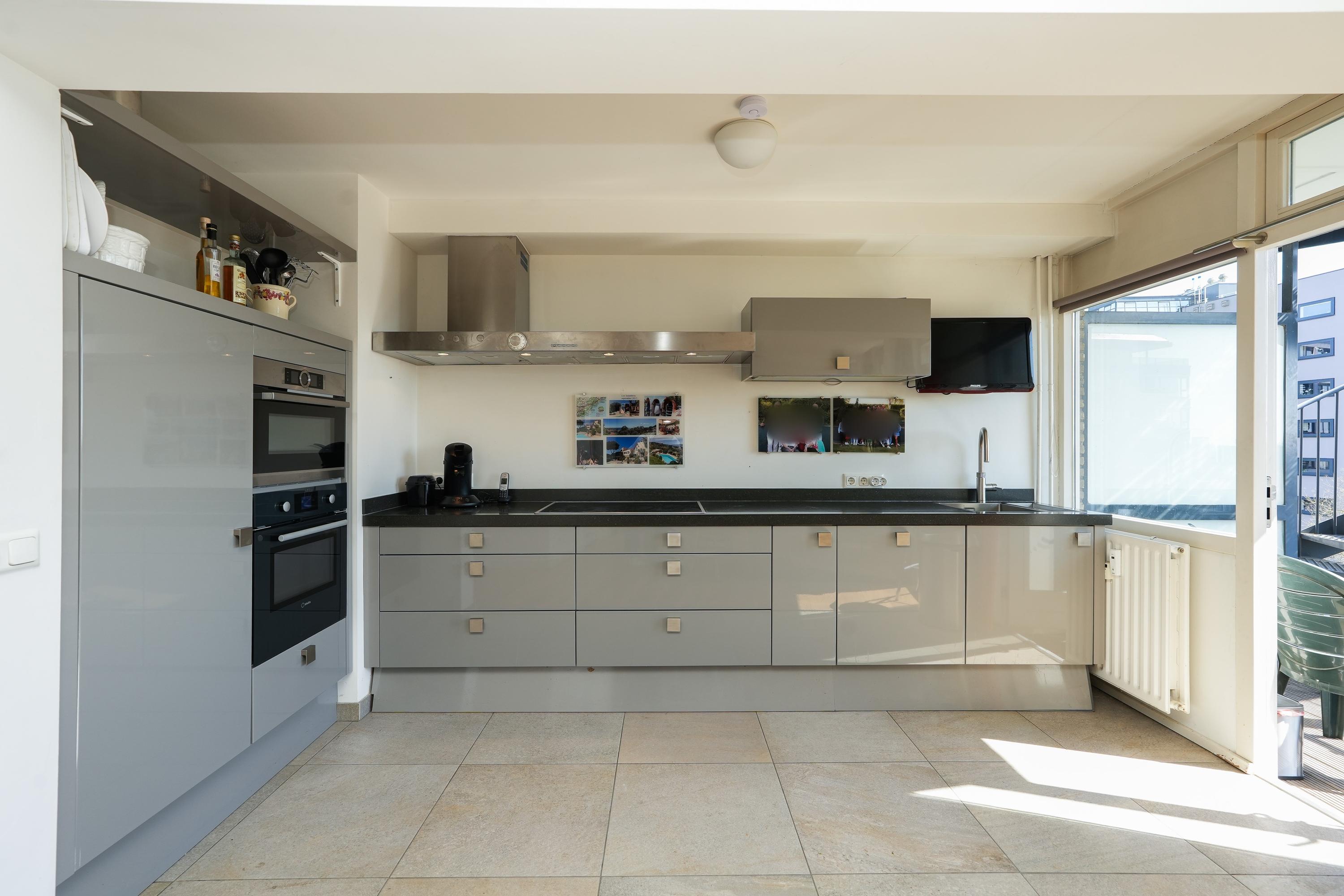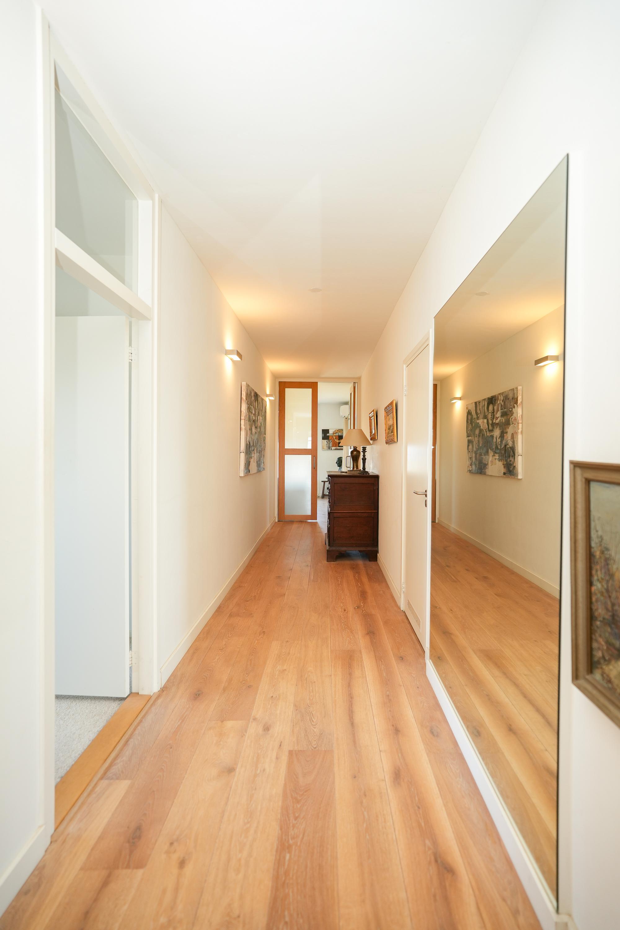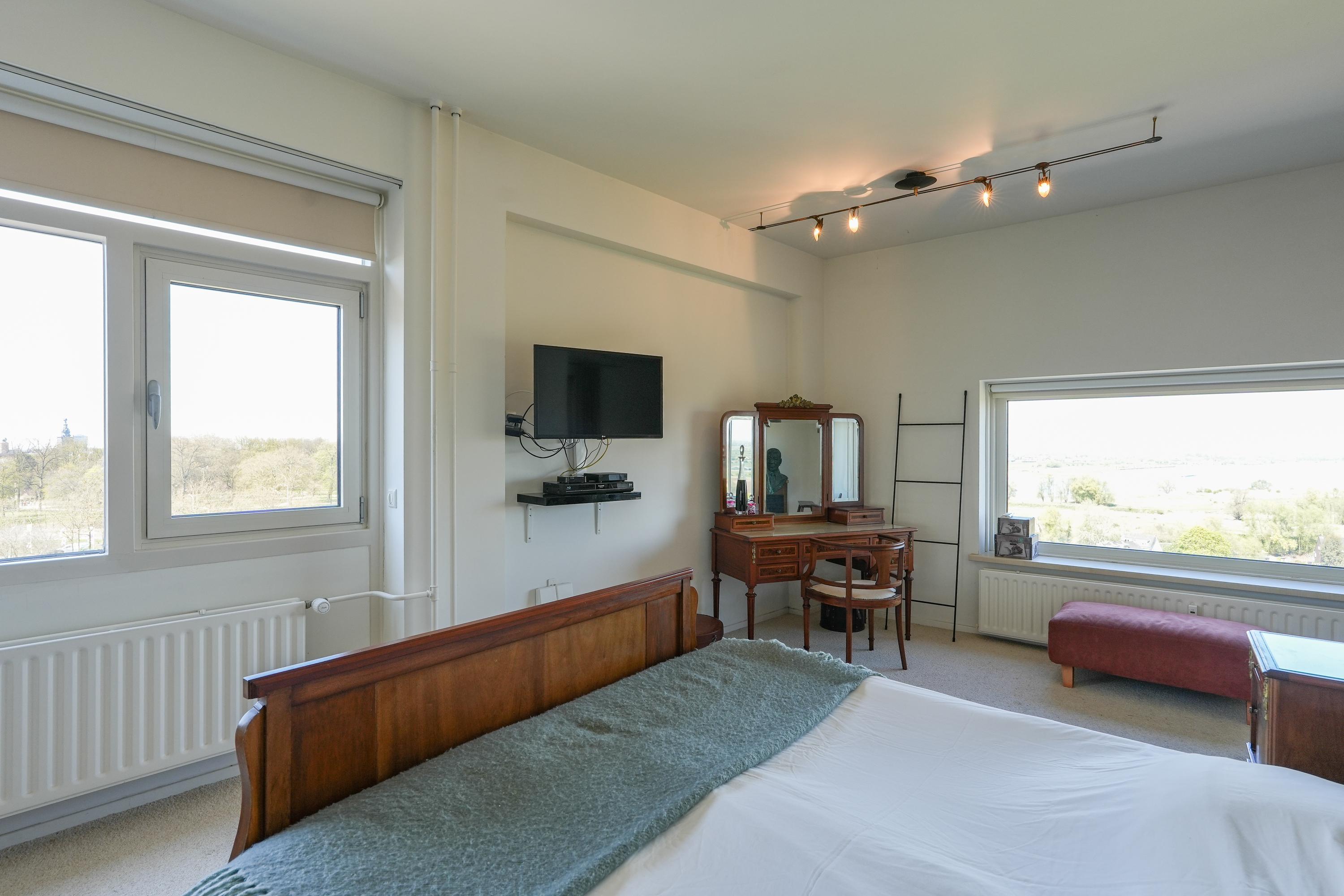 The kitchen is equipped with various built-in appliances and provides access to the first, south-facing balcony. Adjacent to the kitchen is an internal utility room offering additional storage and workspace. From the living room and the balcony there are beautiful views over the city of Nijmegen and Radboud University. A gas fireplace separates the dining area from the television/lounge area on the south-west side. The west-facing balcony offers lovely views towards the River Waal and the iconic Waal Bridge.