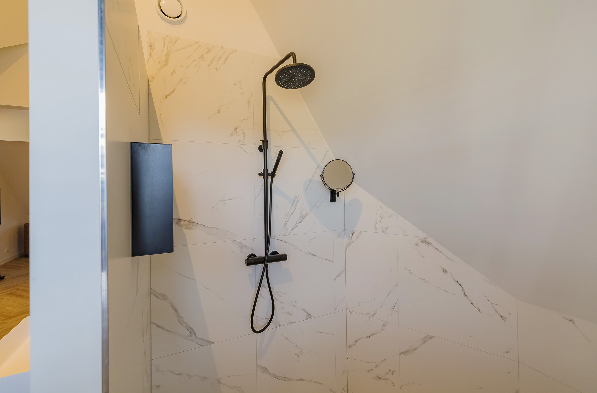 The first floor features three spacious bedrooms with large windows that let in plenty of light. The luxurious bathroom has a spacious walk-in shower and exudes comfort and style. There is a separate toilet on the landing.