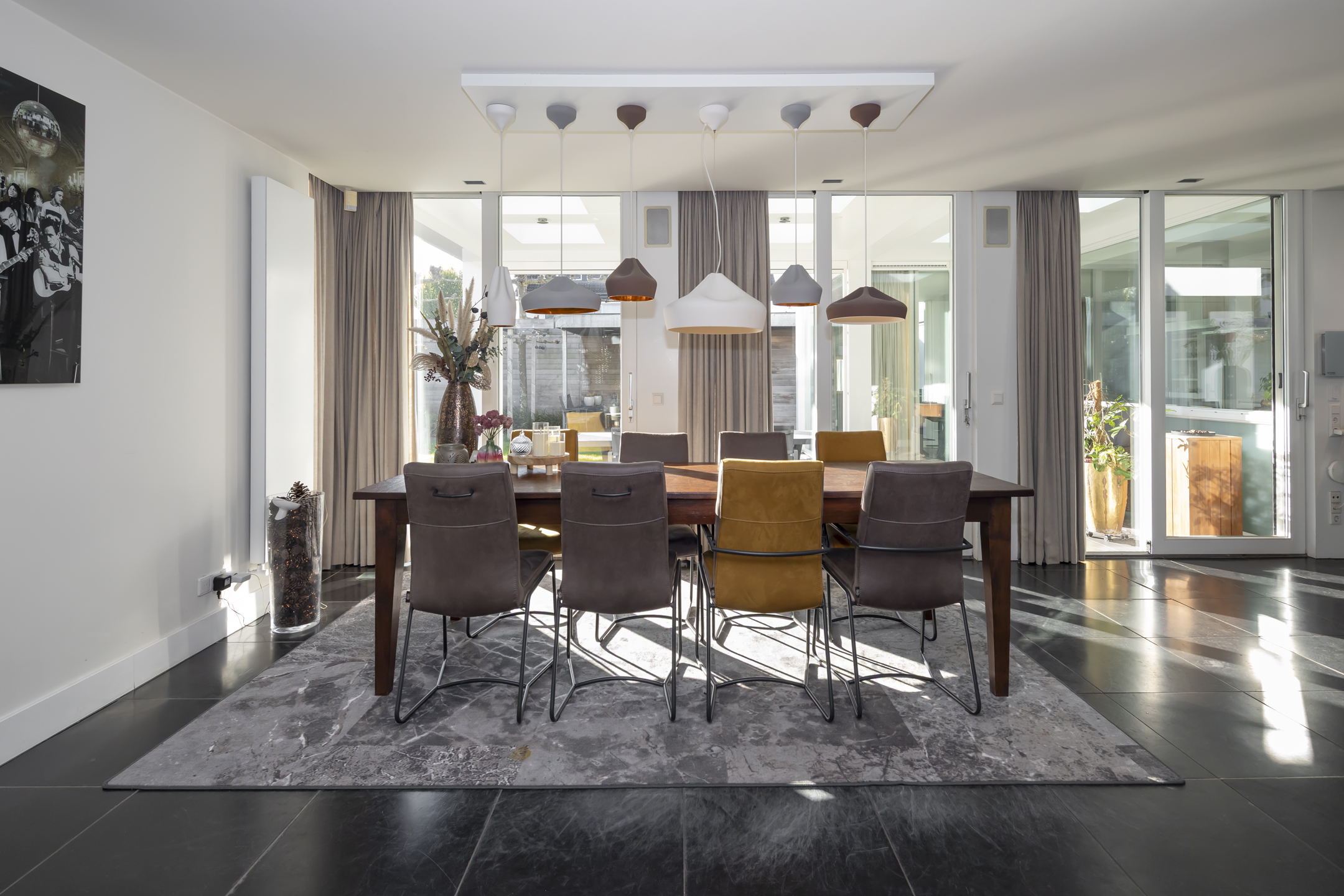 The modern Bulthaup kitchen is equipped with a range of high-quality built-in appliances. There is a Quooker, a dishwasher, a 5-burner induction hob, an extractor hood, an oven, a combination microwave/convection oven and a built-in refrigerator with freezer drawers.