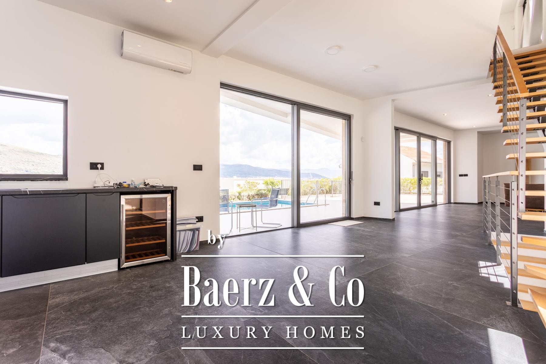 Villa Okrug Croatia stands as a contemporary retreat, set just one row back from the Adriatic shoreline. This three-level villa offers a living area of 326 m² on a 728 m² plot, combining clean architectural lines with unobstructed sea views and access to the tranquil waters that define the island of Čiovo. The focus keyword villa Okrug Croatia speaks to the unique balance of privacy and connection to the Adriatic lifestyle.