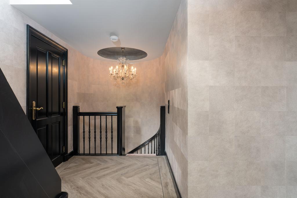 The second floor includes a spacious landing with a laundry area and additional storage space, as well as the heating system, a boiler, and a large fourth bedroom with custom-built wardrobes.
