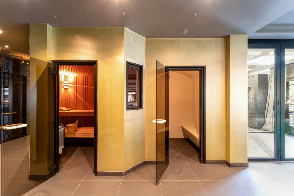 One of the absolute highlights of this property is the indoor swimming pool with a wellness area. This exclusive pool (renovated in 2022) is seamlessly integrated into the villa and separated from the living area by a glass wall. From the pool area, you have direct access to the expansive garden with a large terrace, ideal for relaxing in a luxurious lounge setting.