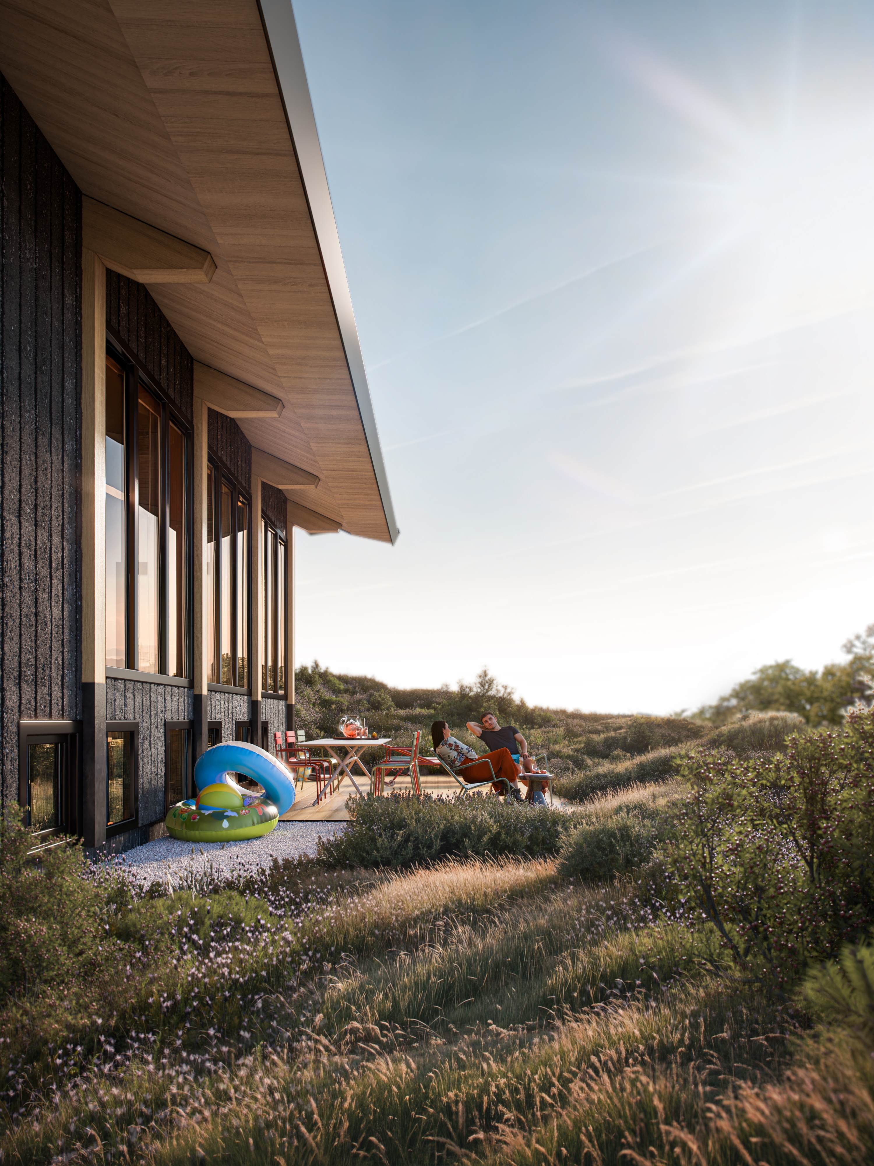 The featured home provides 118 m² of living space, arranged across three bedrooms and two bathrooms. Every detail has been carefully considered, from the quality finishes to the orientation of spacious terraces that capture uninterrupted dune views. The overall atmosphere is one of serenity, privacy, and understated comfort—a subtle harmony between indoor refinement and the wild beauty outside.