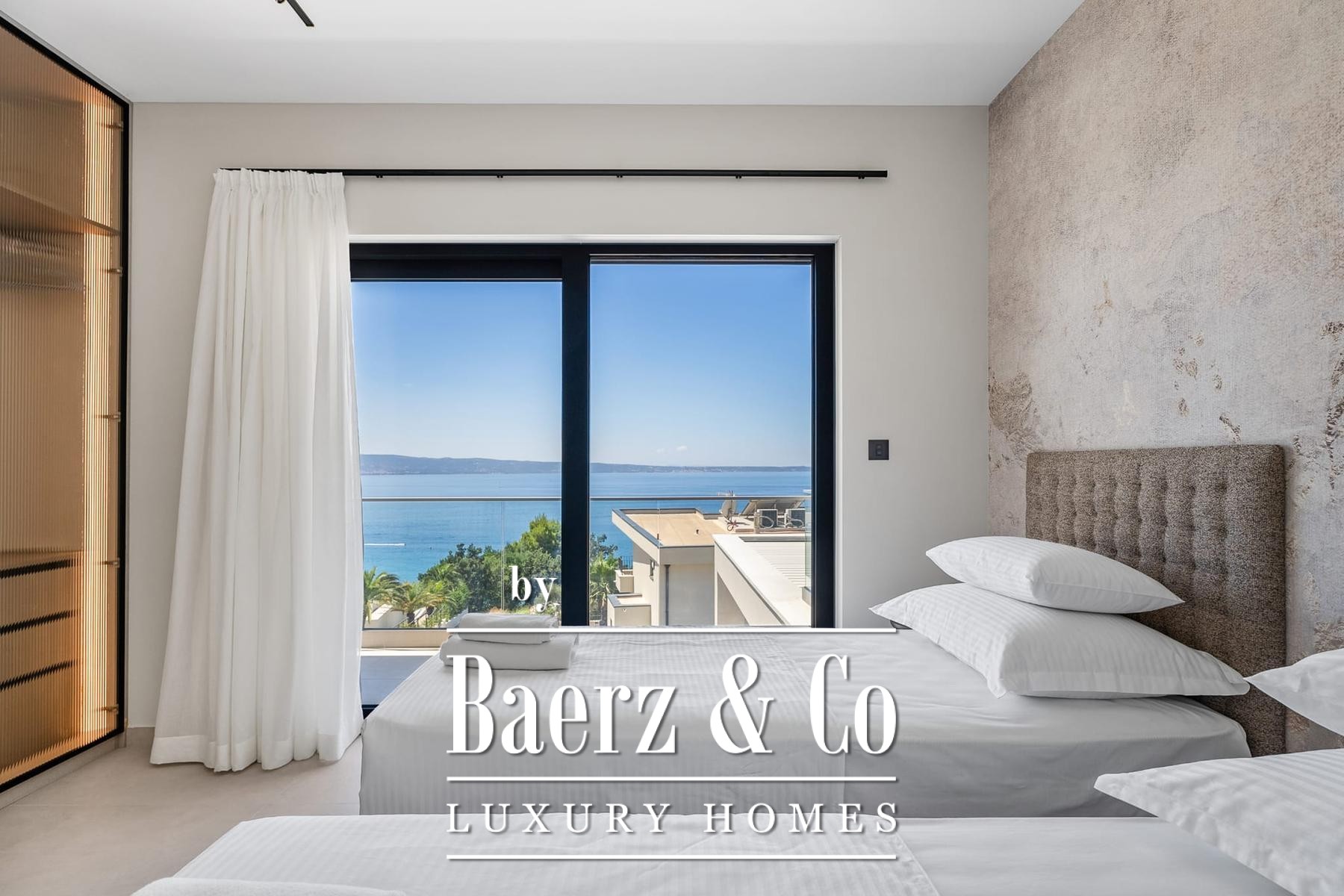 Luxury villa Podstrana presents a contemporary statement above the Adriatic, combining panoramic sea views with the quiet rhythms of hillside living. This villa, newly constructed and fully furnished, spans 328 m² across three levels, set discreetly within a 620 m² plot just 300 metres from the sea.