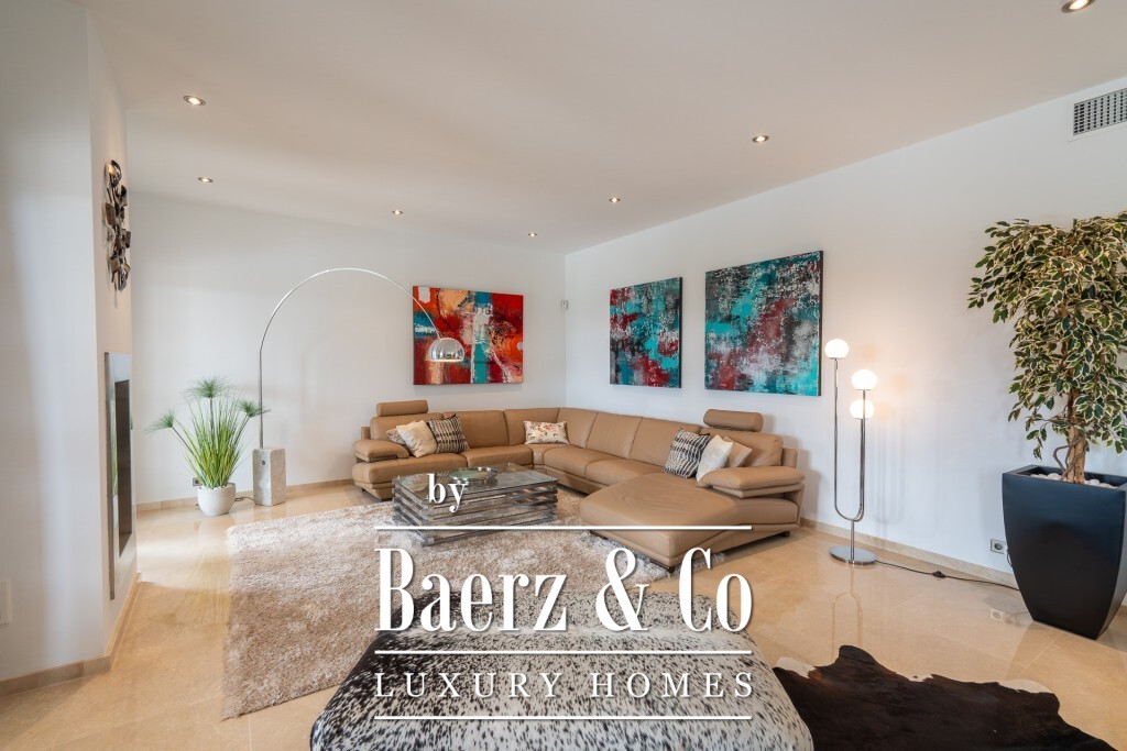 Mediterranean villa Pollença stands as a rare offering in one of the island's most sought-after settings, surrounded by just 20 exclusive residences and directly bordering a 9-hole golf course. Spanning a 2,319 m² plot and offering 672 m² of living area, this villa is poised above the landscape, delivering panoramic sea and mountain views that extend across the greens towards the bays of Pollensa and Alcudia. The south-facing orientation enhances the light-filled interiors, while intelligent landscaping guarantees complete seclusion for the pool, terraces, and gardens.