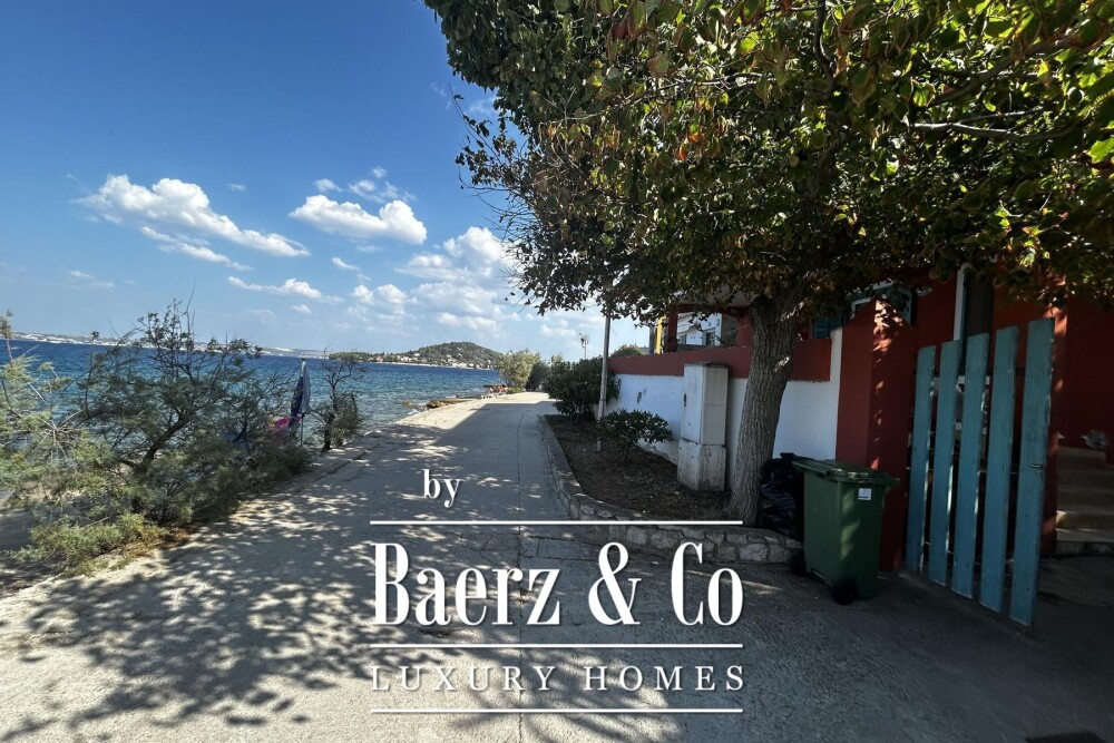 Each level opens to terraces with uninterrupted sea views. The garden presents a thoughtfully excavated area prepared for a pool, sun terrace, and barbecue, adding a dimension for outdoor relaxation and entertaining. The largest sandy beach in Preko, marked by the ecological Blue Flag, is steps away, as are village restaurants, shops, and beach bars. This luxury townhouse for sale in Preko is an invitation to live at the gentle pace of the coast, in proximity to all essential amenities.