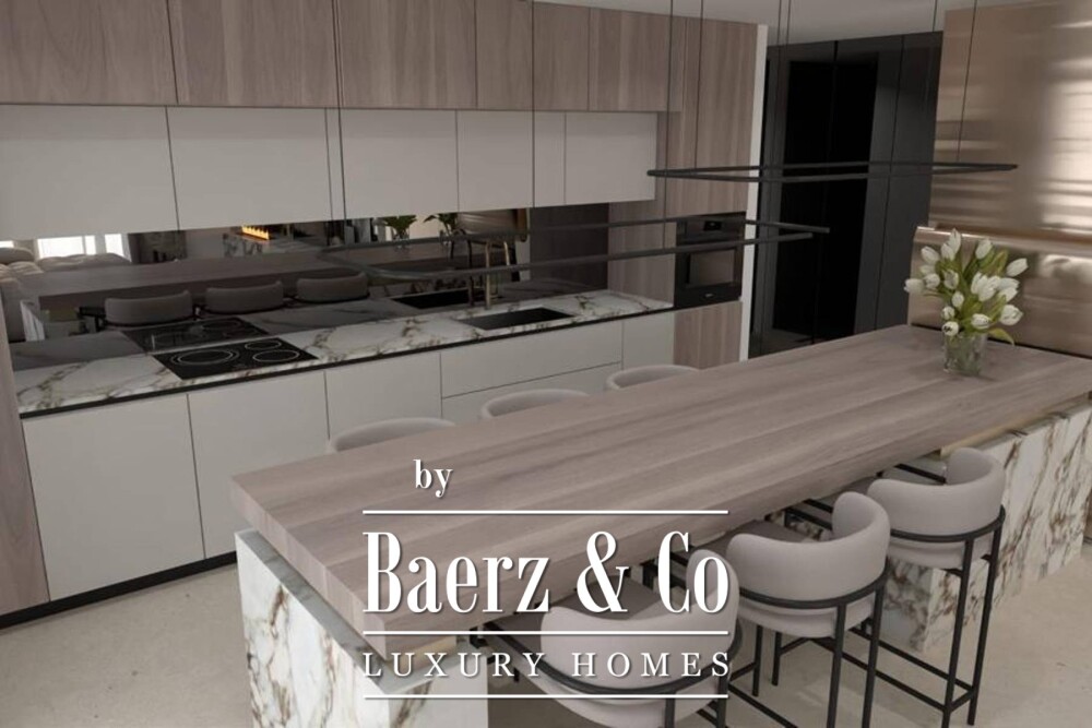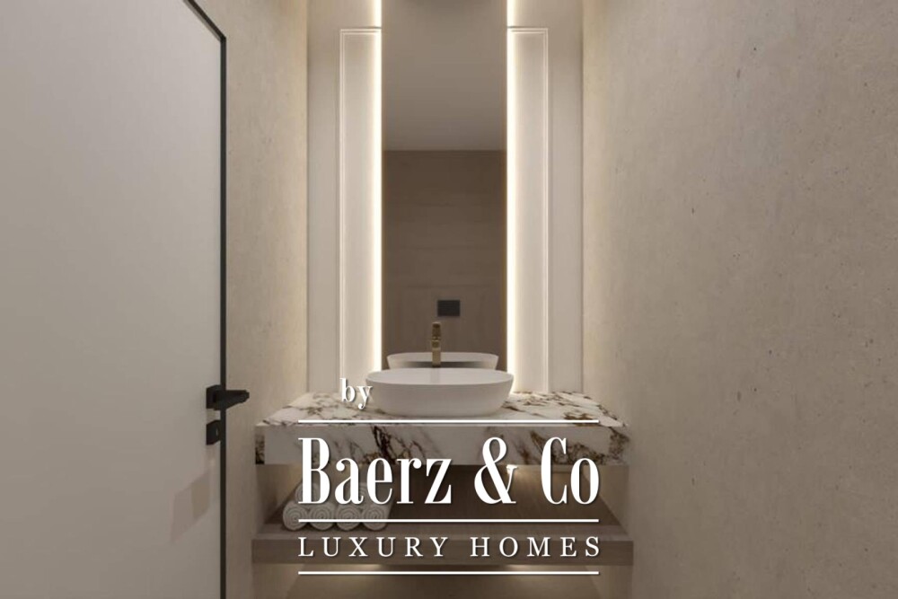 The villa covers 229 m², situated on a generous 1,200 m² plot. A single-level, cascading layout provides effortless circulation and privacy across the main living room, kitchen, dining area, and four bedrooms—each served by its own bathroom. Purposeful spaces such as the gym, laundry, and storage complement daily function without intrusion. The villa’s heated swimming pool measures 8 by 4 meters and is complemented by a jacuzzi, while a terrace and a 30 m² garage further enhance the living experience.