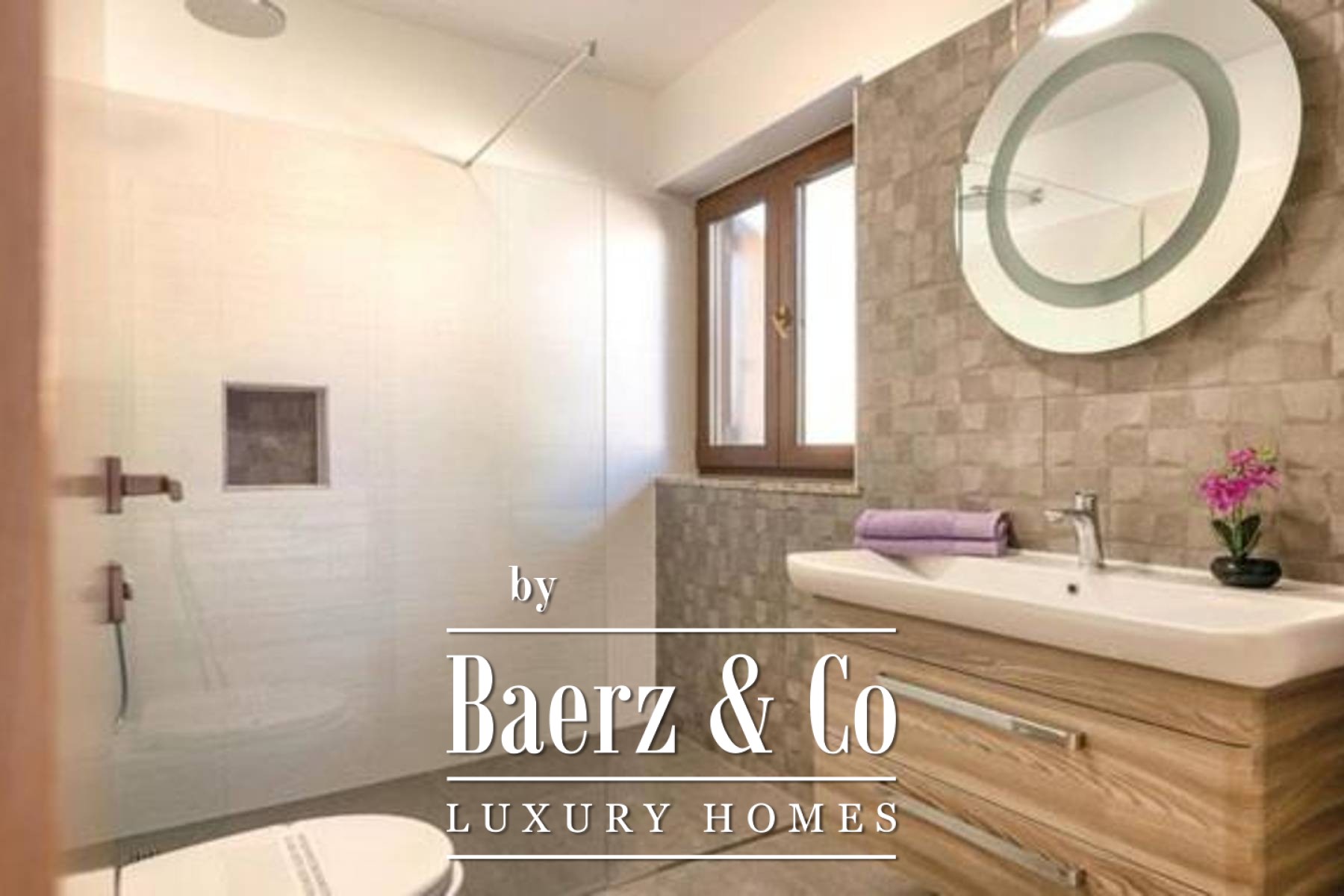 Five ensuite bedrooms on the first floor open to private balconies. At the back, a separate entrance leads to a terrace and a rustic-style tavern with open fireplace, kitchen, and grand dining table. The second floor is configured as a self-contained apartment with living area, kitchen, two bedrooms, bathroom, toilet, and terrace. In the attic, two more bedrooms, bathroom, and a balcony complete the layout. Wood-colored PVC joinery, video surveillance, alarm, safe, and a private well for water and irrigation add assurance and practicality.