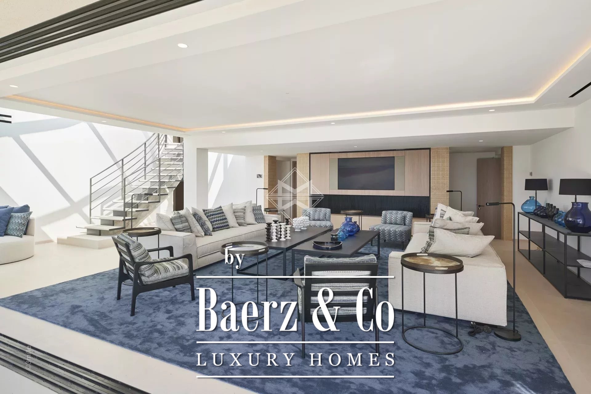Nestled in the heart of a very residential and closed residence, this modern property is distinguished by its generous volumes, extending over an area of approximately 500 m2. It consists in particular of vast living rooms which open onto large terraces offering a completely open panorama of the sea and nature. It also includes 6 large suites and 2 bedrooms for staff.