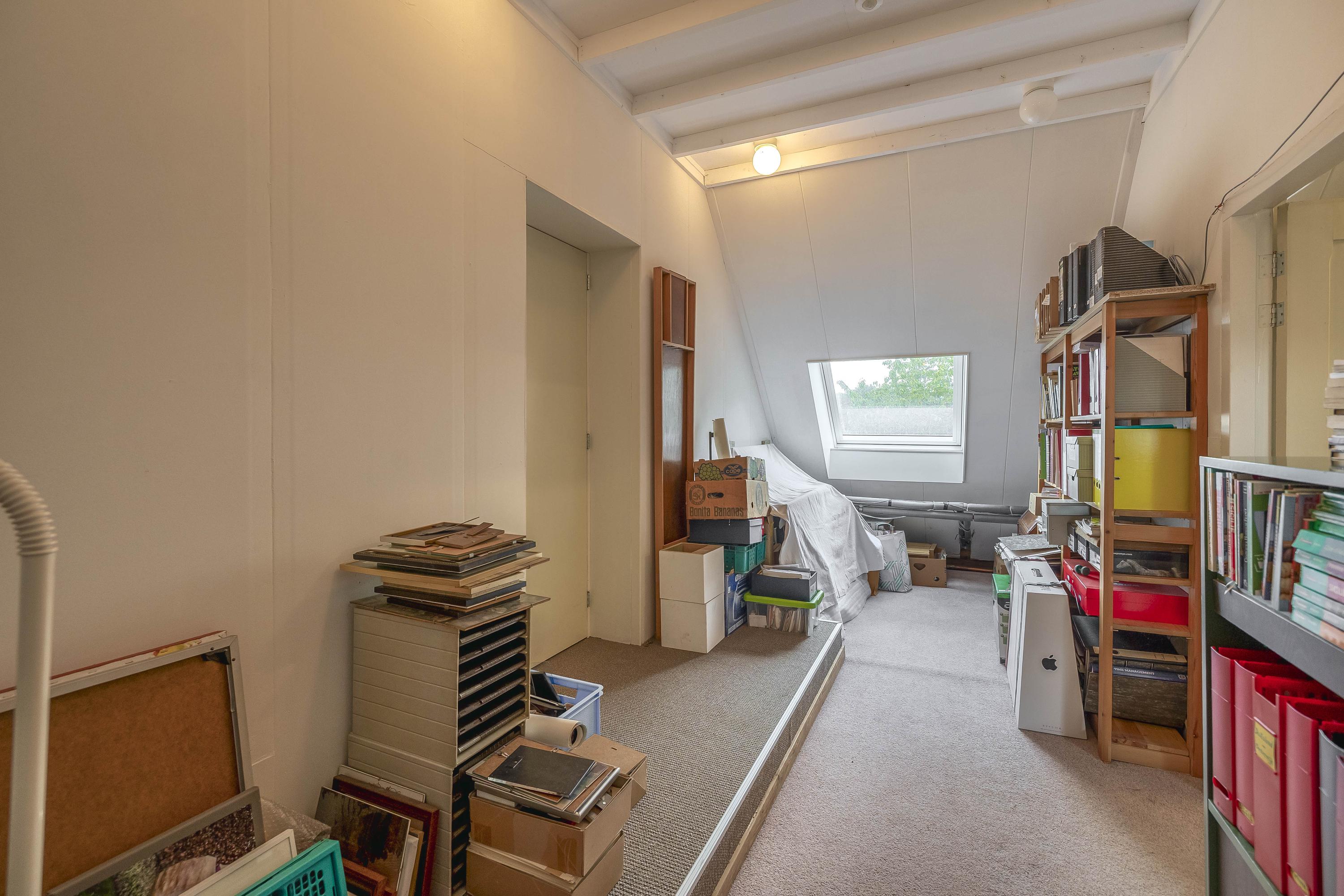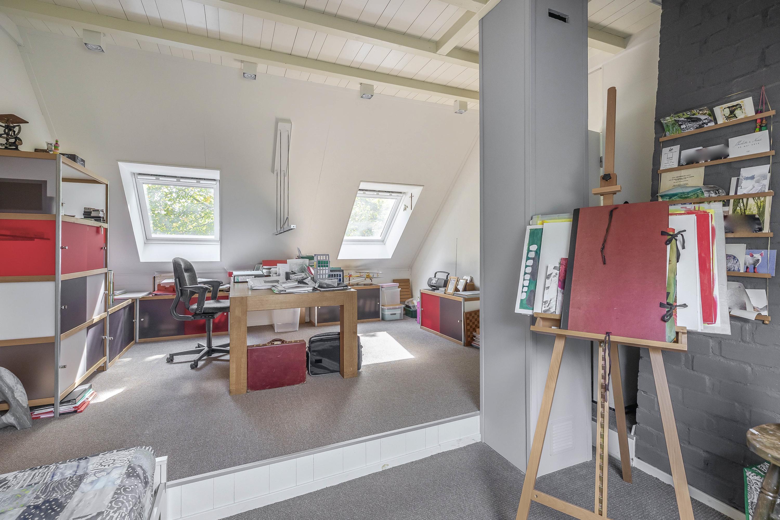 In addition, there is a large attic floor, which can be freely divided into extra rooms. This spacious room has three large skylights (one at the rear, two at the front). The Nefit central heating combi boiler (built in 2012) is also located here. A fixed staircase leads from this space to the garage. The entire floor offers plenty of potential for your living requirements and the creation of extra room(s).