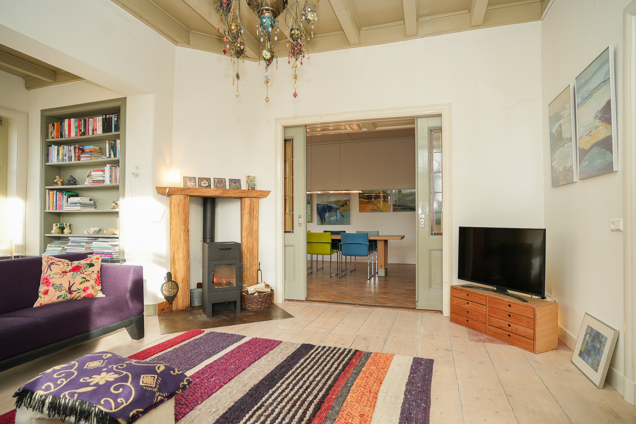 Villa Rossum combines the grace of its 1897 origins with contemporary allure, set within a 2,150 m² nature garden populated with fruit trees and edible plantings. This villa Rossum, designated a municipal monument, offers 277 m² of living area framed by original architectural details, including sliding stained glass doors, high ceilings, a broad main staircase, and crafted cabinetry. Light flows through bay windows to spaces anchored by parquet floors and a wood-burning stove, while a bespoke kitchen connects seamlessly to the garden—a design realized in 2021 to enhance indoor-outdoor living. Throughout the property, authentic features are preserved, balanced with energy-efficiency, resulting in energy class B.