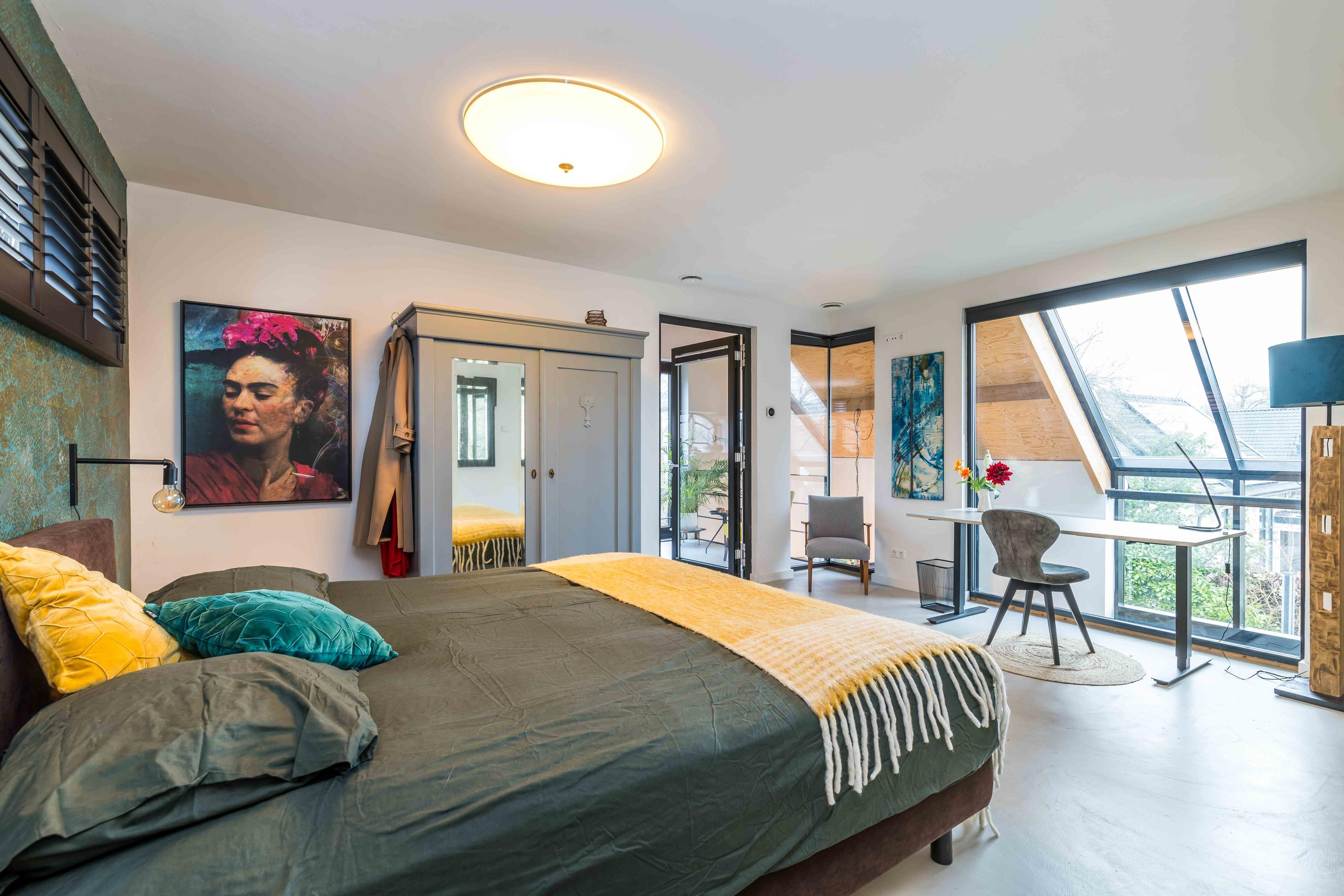 A unique addition to the house is the completely renovated former barn, which was transformed into a full-fledged living space in 2019. This 'back house' is connected to the original house at the front via passages on both the ground floor and the first floor. On the ground floor there is a beautiful, bright open plan kitchen, perfect for cozy dinners and get-togethers. A spacious bedroom has been created on the first floor, which can also serve as an ideal office or office. The back house is also suitable as a separate living space.