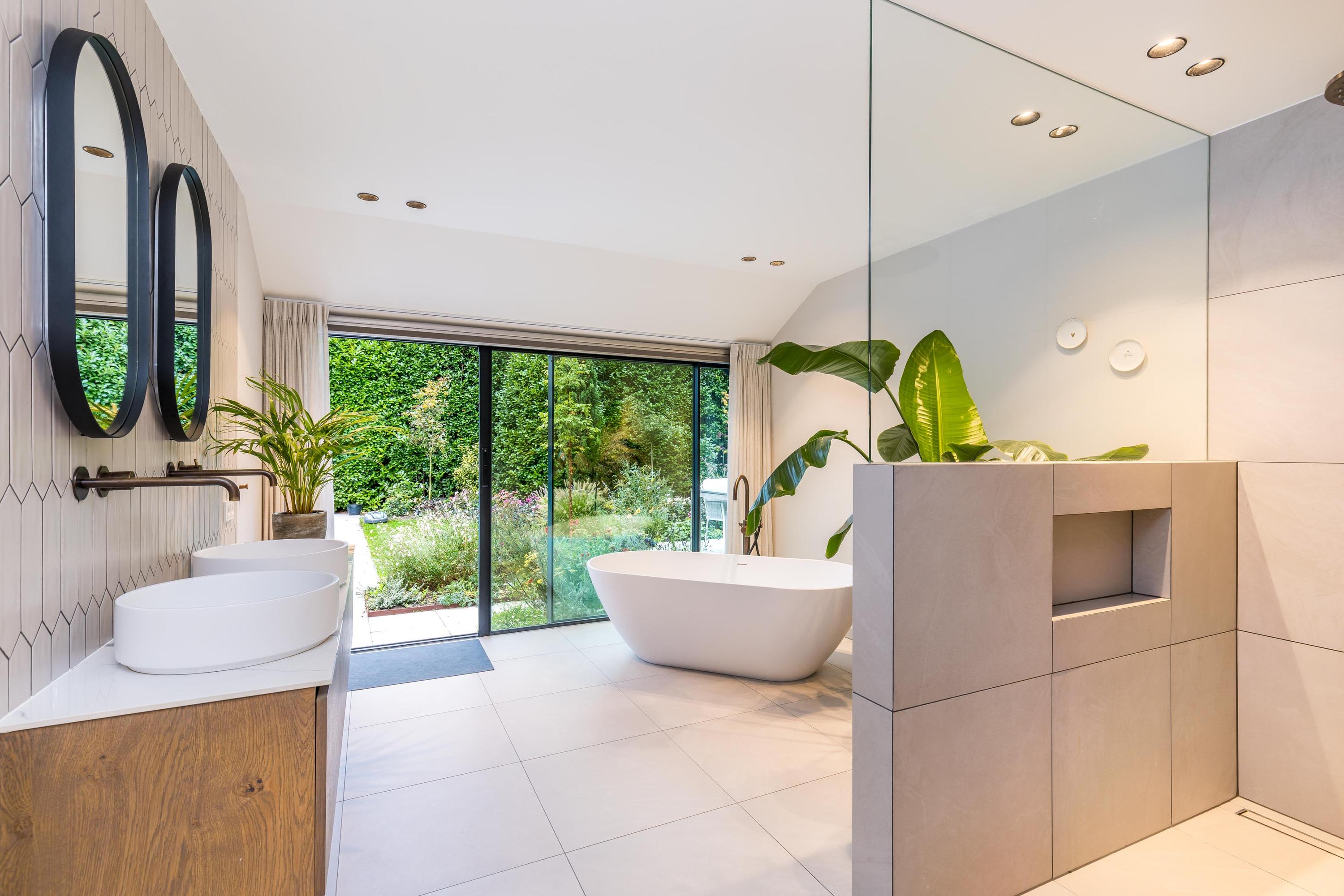 Sustainability is integrated through A++ insulation, a heat pump from 2024, 33 solar panels, and a charging station, keeping energy usage remarkably low. Living here means direct access to forest paths, rivers, and lakes, yet shops, schools—including international options—and transport links to Amsterdam and Utrecht are moments away. This luxury villa for sale in Rotterdam represents considered living where architecture, nature, and urban access meet.